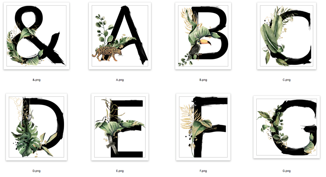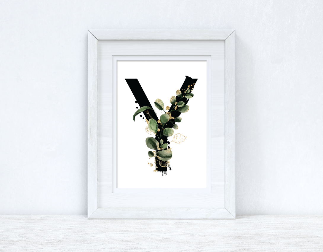 Watercolour Jungle Black Green Golds Personalised Alphabet Letter Bedroom Home Wall Decor Print