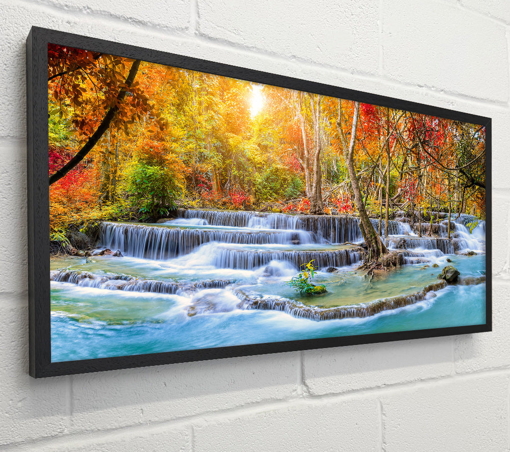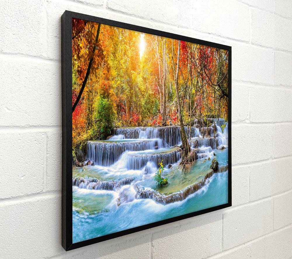 Waterfall forest sunset