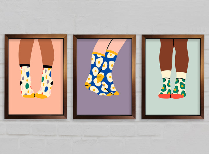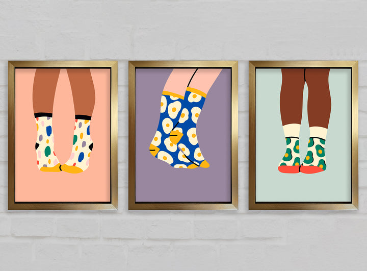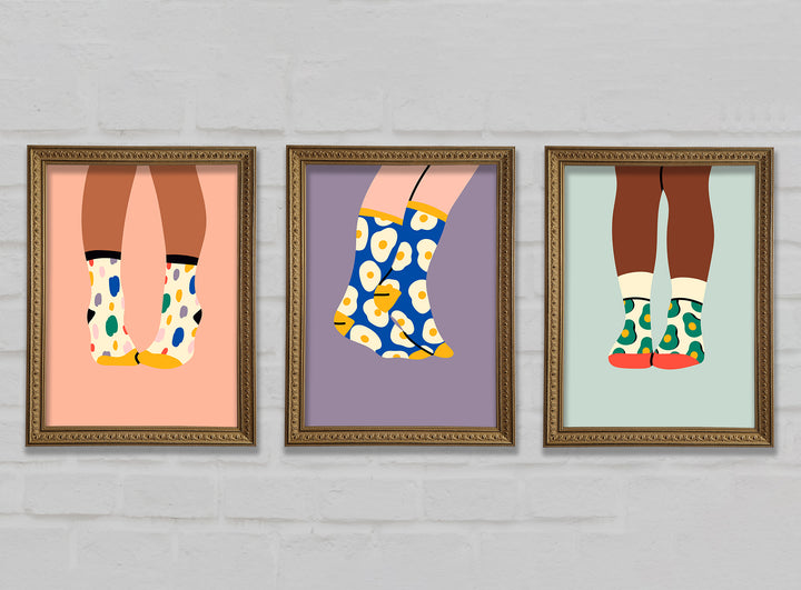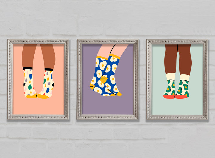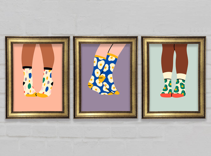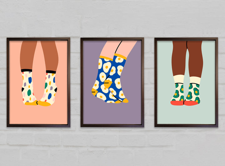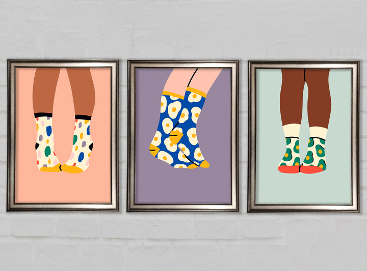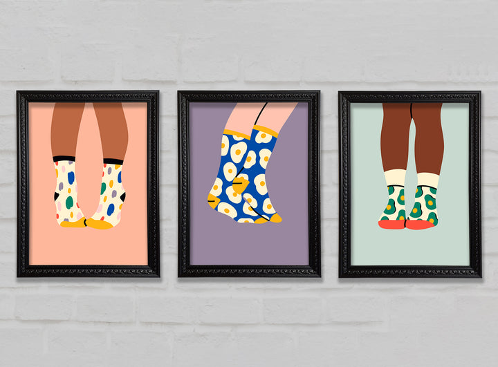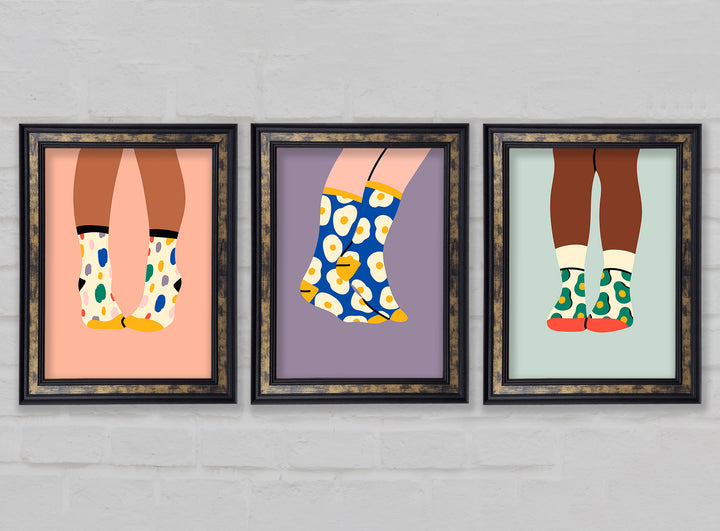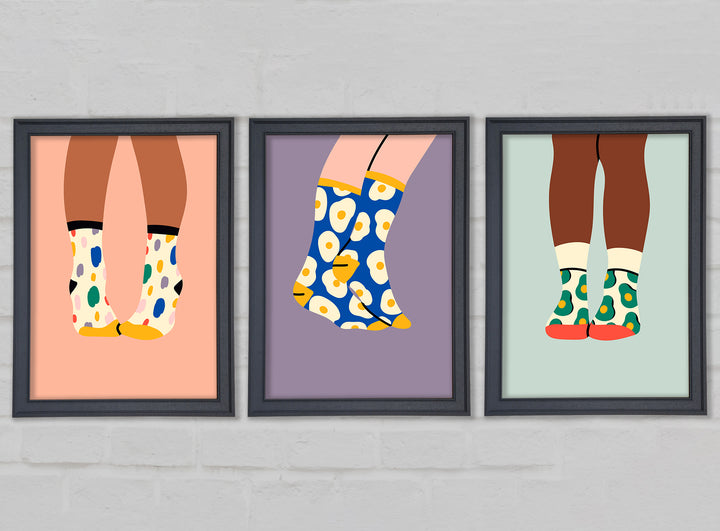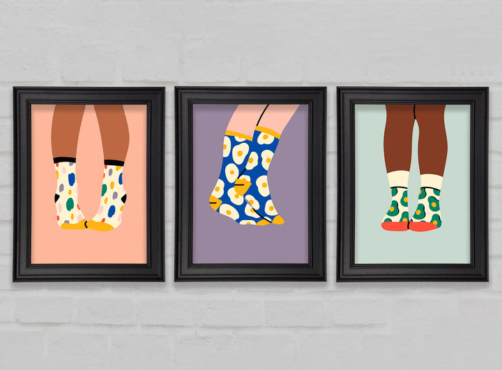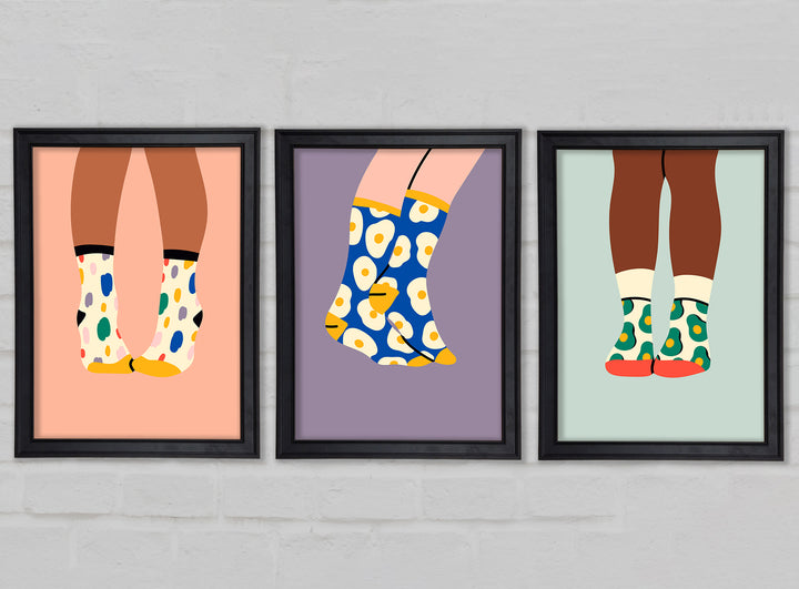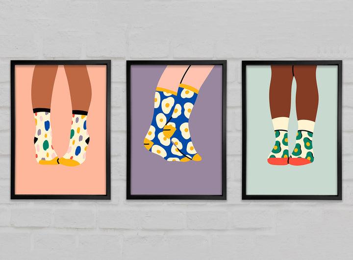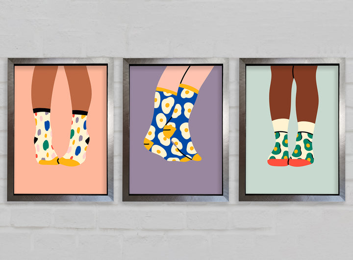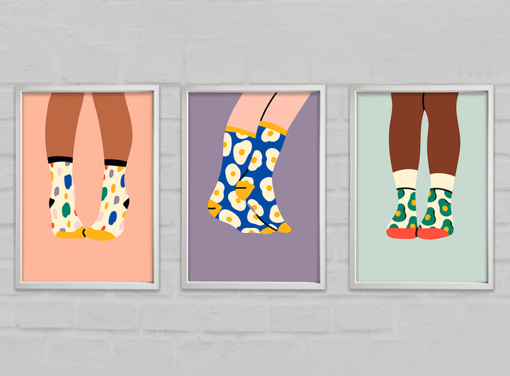 We Love Socks set of 3 framed print wall art, available in mutiple frame colours. Ready to hang from the box and handmade in the United Kingdom.