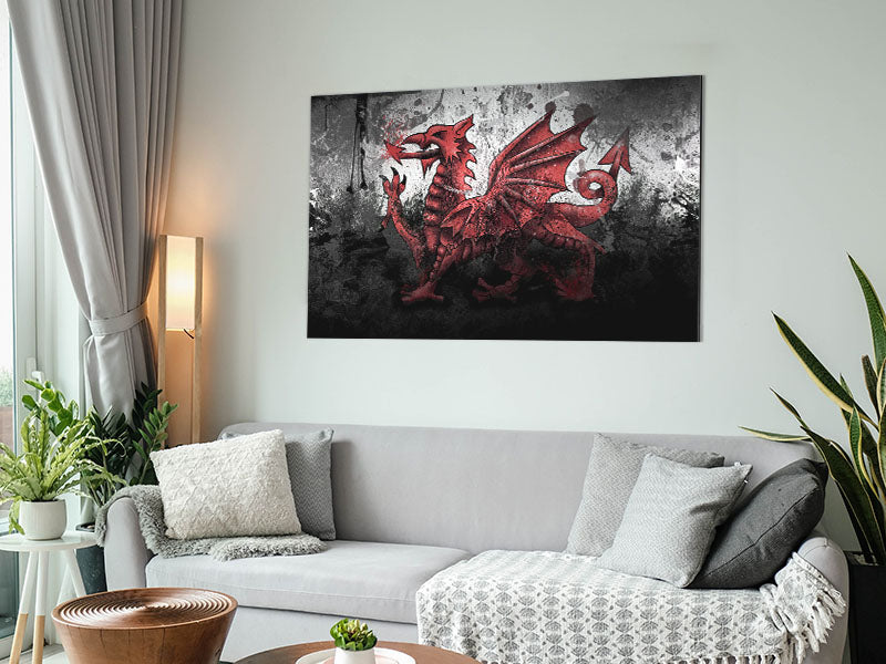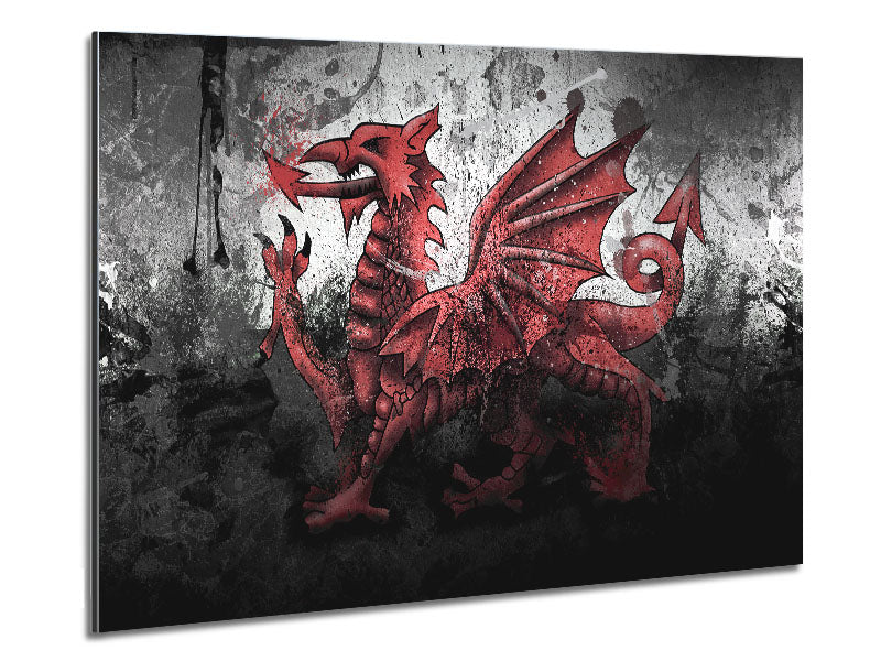 Welsh Dragon Grunge Printed on brushed aluminium dibond. A modern way to display art and easy to maintain.