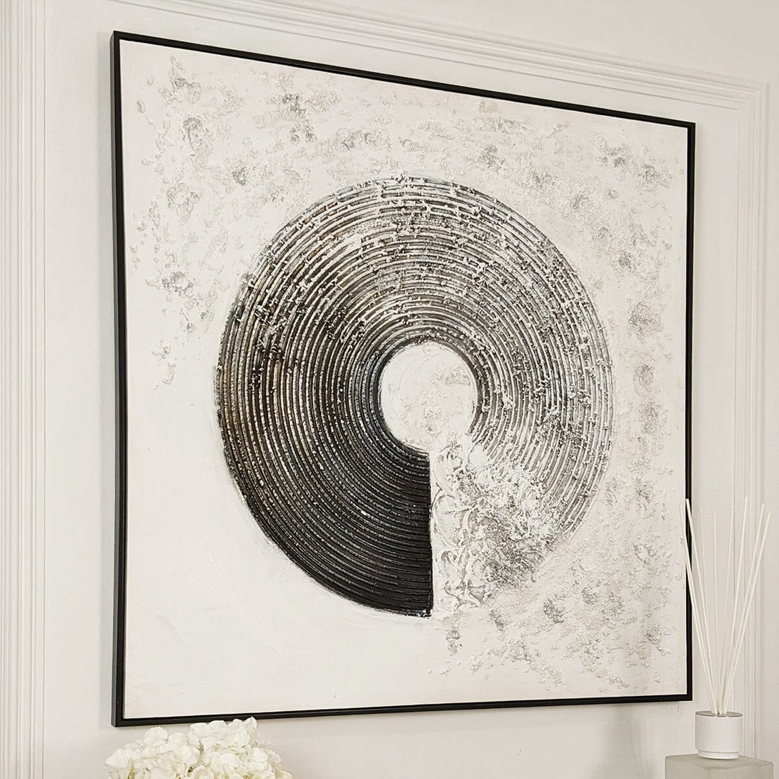 Elevate your living space with the Westborne Monochrome Spiral Textured Canvas Wall Art.