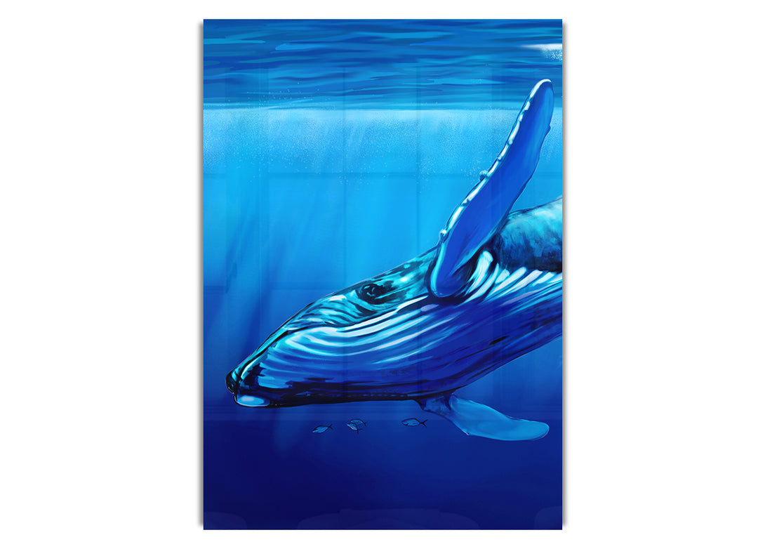 Whale Blues acrylic print, UV printed onto 5mm thick acrylic glass. Comes with everything you need to hang on your wall.