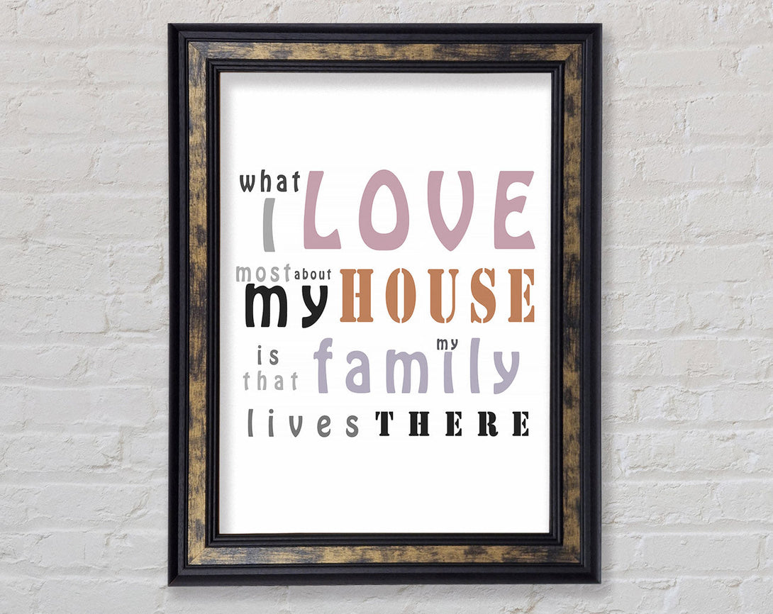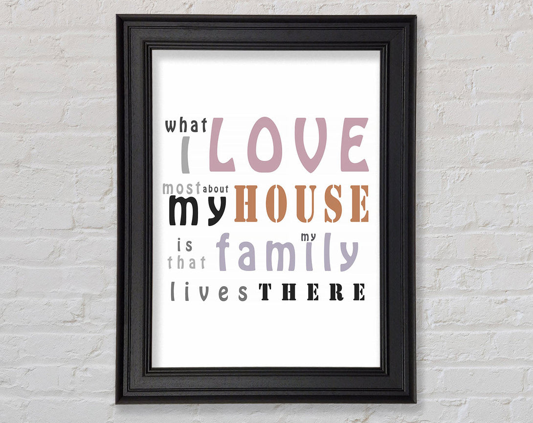What I Love Mosy About My House Framed Print