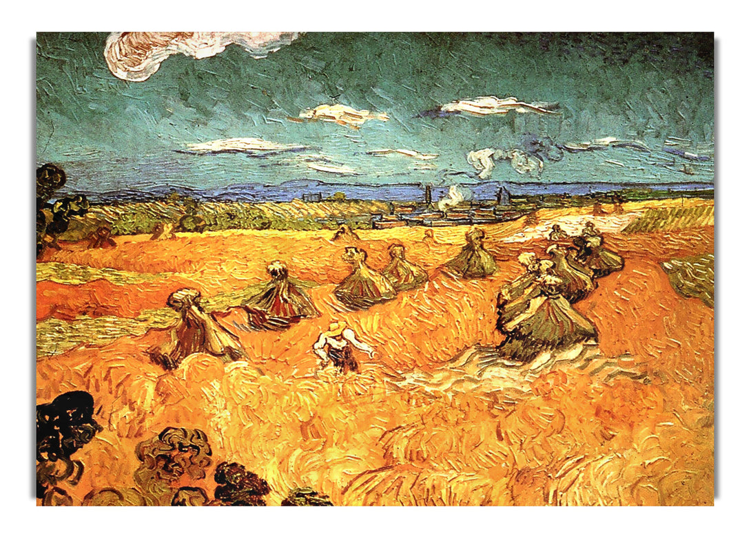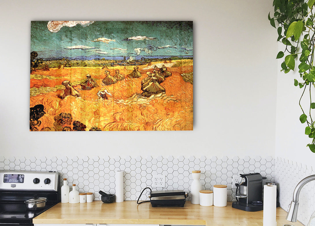 Wheat Stacks With Reaper By Van Gogh acrylic print, UV printed onto 5mm thick acrylic glass. Comes with everything you need to hang on your wall.