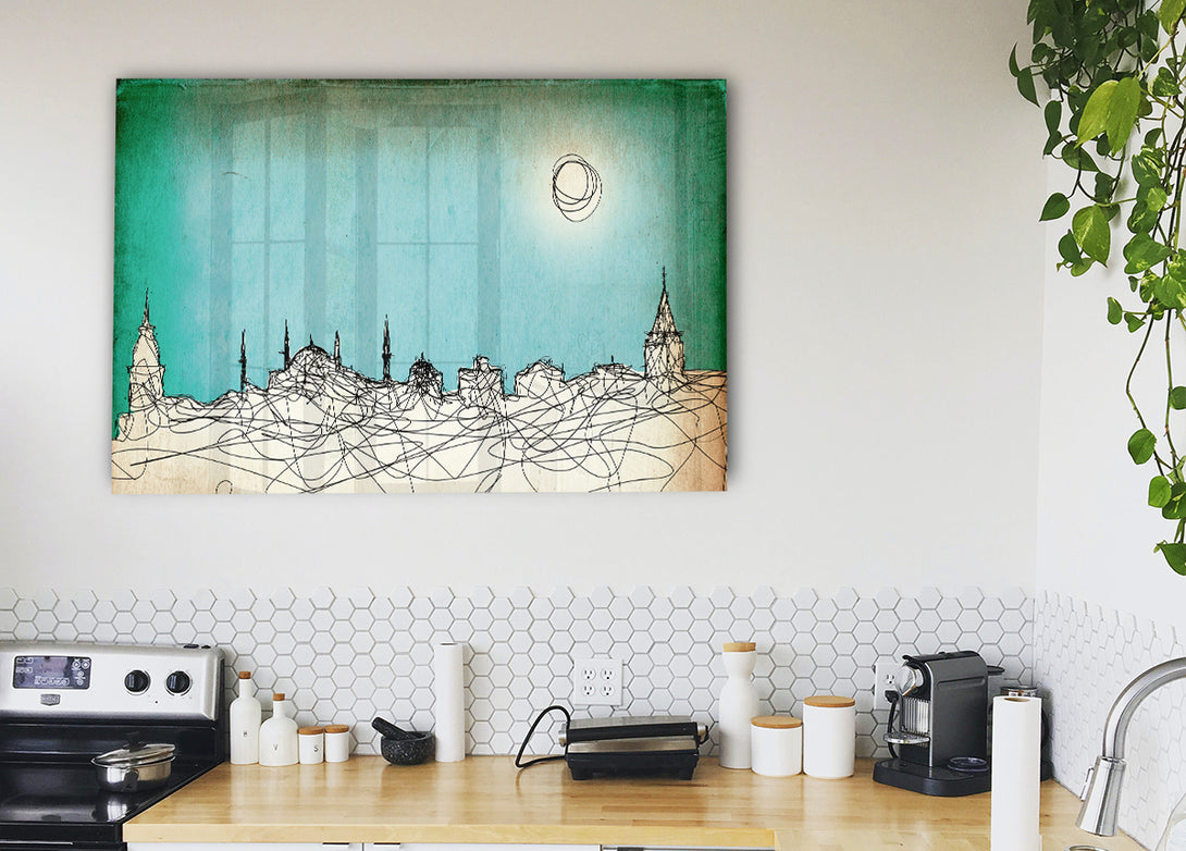 Where The Sun Sets Over Town acrylic print, UV printed onto 5mm thick acrylic glass. Comes with everything you need to hang on your wall.