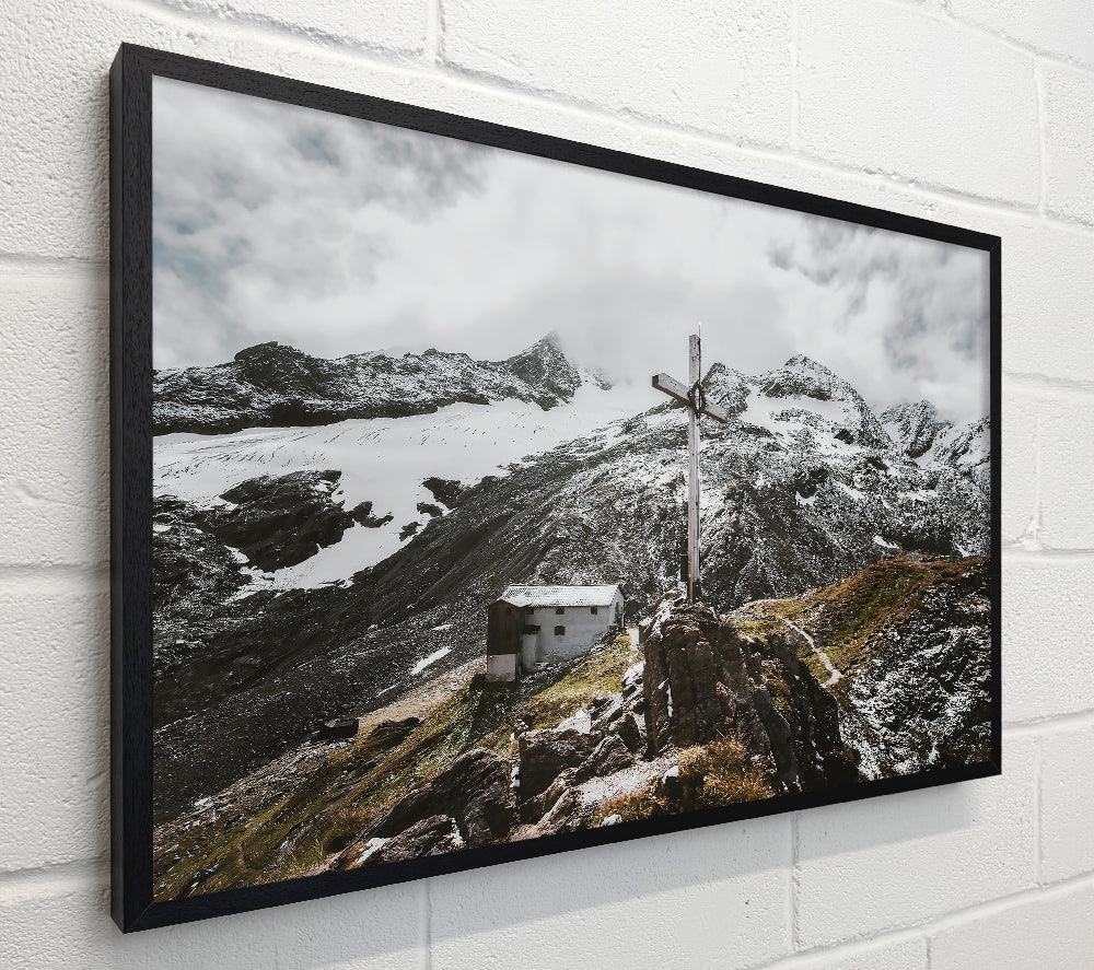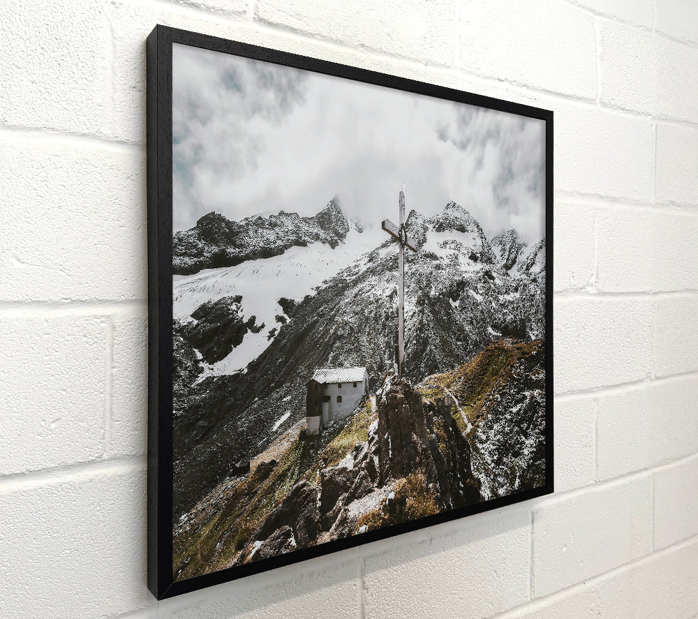 White Cross On Snowcapped Peaks