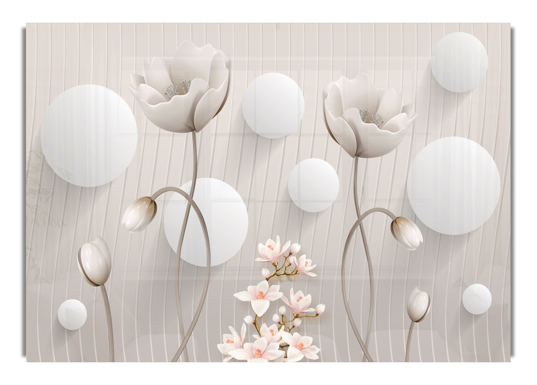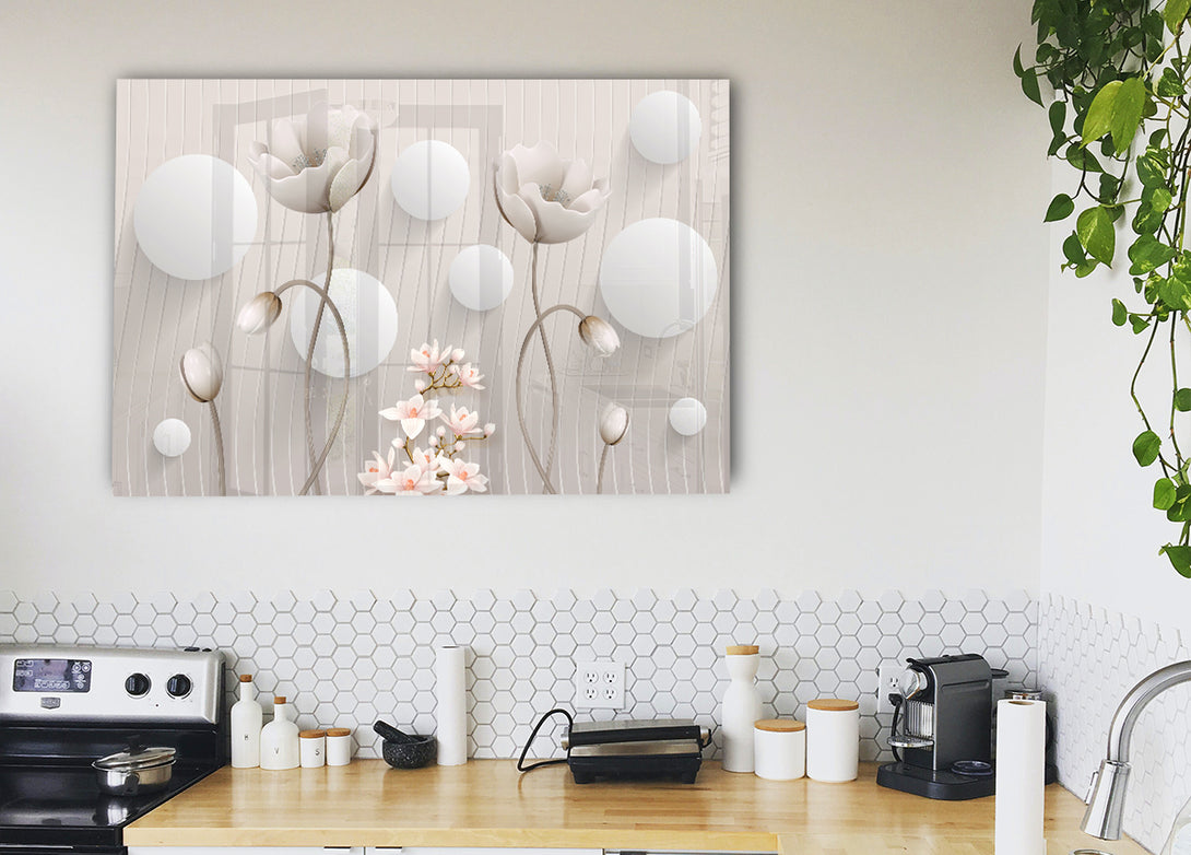 White Flower Circles acrylic print, UV printed onto 5mm thick acrylic glass. Comes with everything you need to hang on your wall.