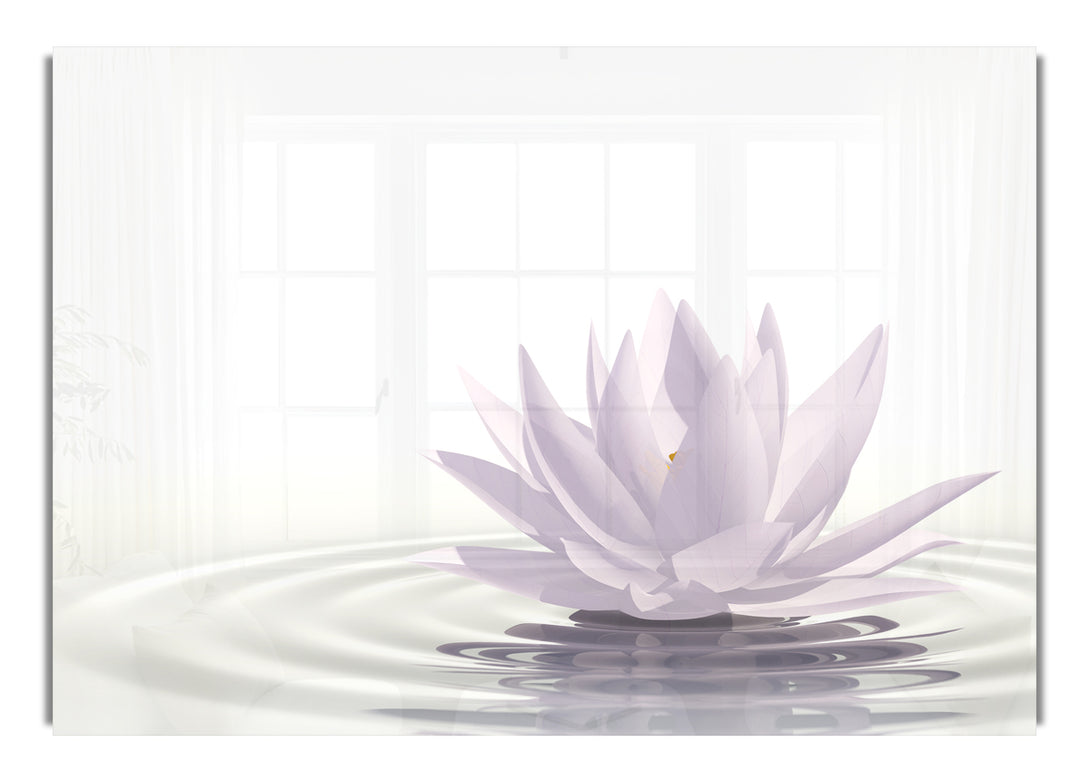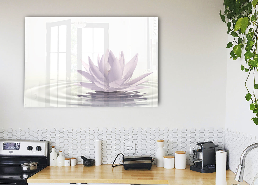 White lotus on rippled water acrylic print, UV printed onto 5mm thick acrylic glass. Comes with everything you need to hang on your wall.