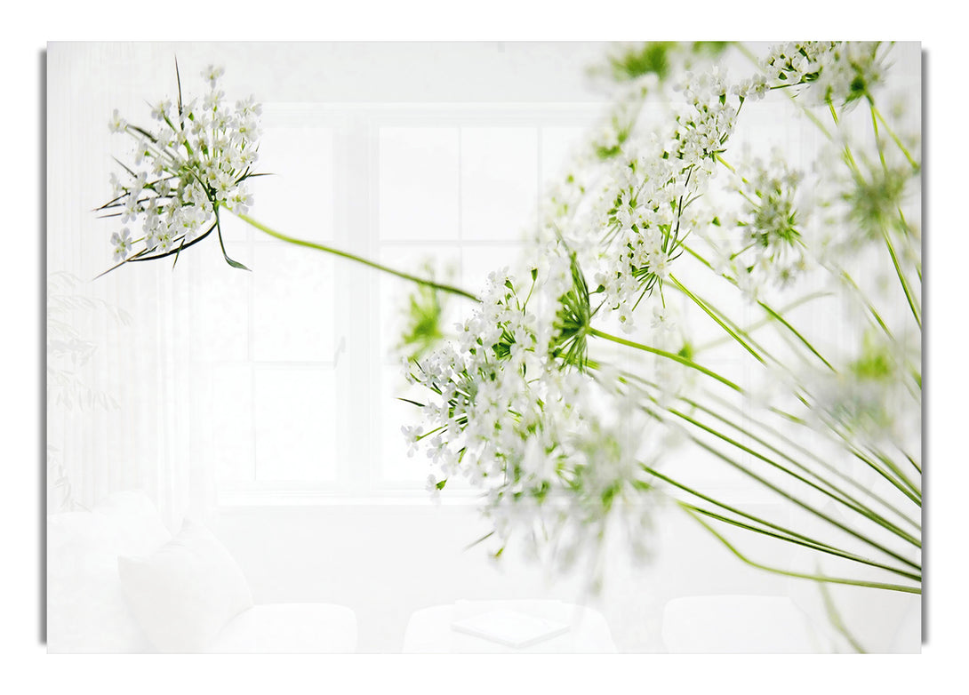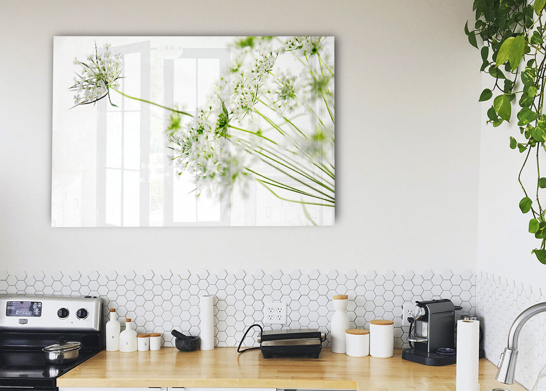 White On White Flowers acrylic print, UV printed onto 5mm thick acrylic glass. Comes with everything you need to hang on your wall.