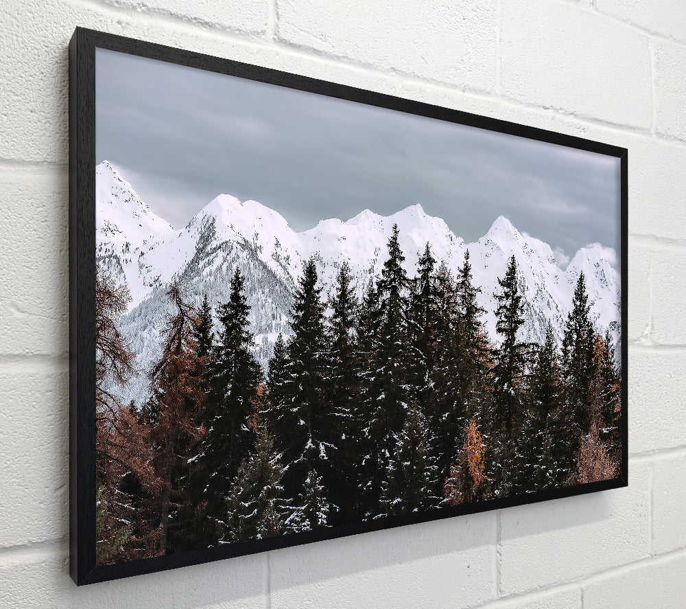 White Peaks Through Pines