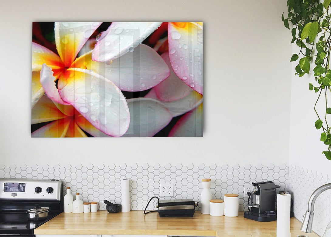 White Petal Dewdrop acrylic print, UV printed onto 5mm thick acrylic glass. Comes with everything you need to hang on your wall.