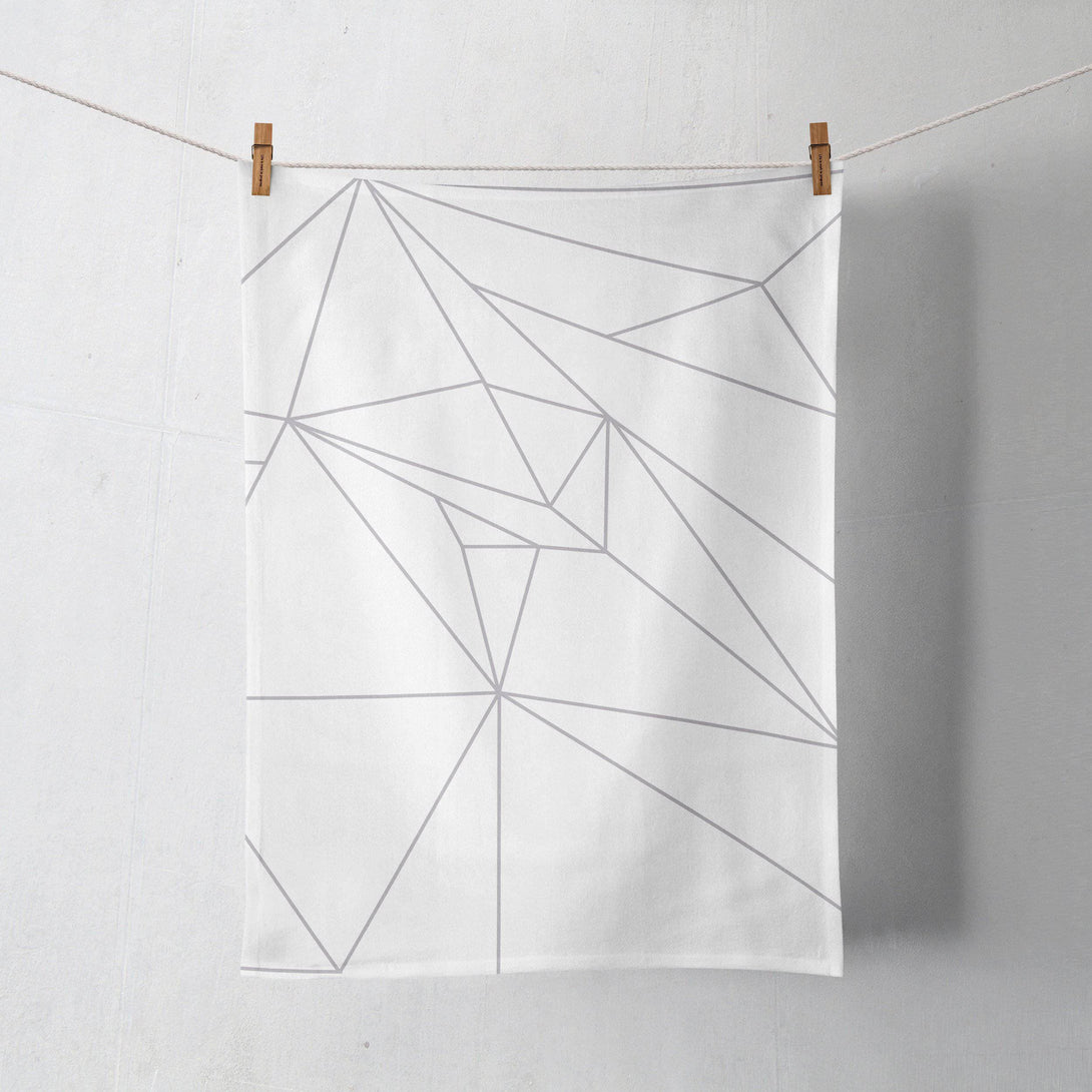 White Tea Towel with a Grey Geometric Line Design, Dish Towel, Kitchen Towel