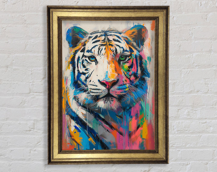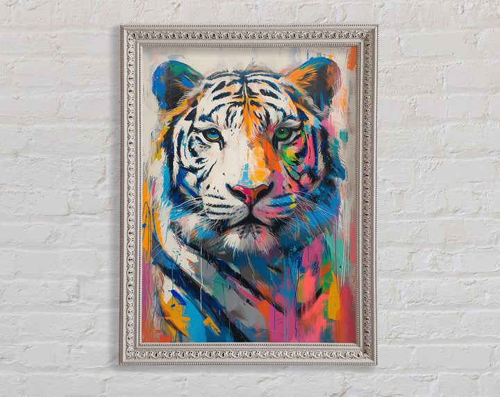 Introducing the White Tiger Colour Framed Print, a stunning piece of framed art that brings elegance and a touch of the wild to your home decor. This beautiful print features a majestic white tiger, captured in vibrant colours that make it a focal point in any room. Available in six sizes, from small to oversized, this artwork fits perfectly in any space, big or small. Choose from a variety of frame colours to match your interior style. Each piece is handmade in the United Kingdom, ensuring top-notch quality and craftsmanship. Ready to hang, this framed art is perfect for adding a sophisticated touch to your living room, bedroom, or office. Elevate your decor with this eye-catching White Tiger Colour Framed Print today!