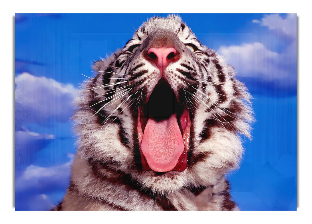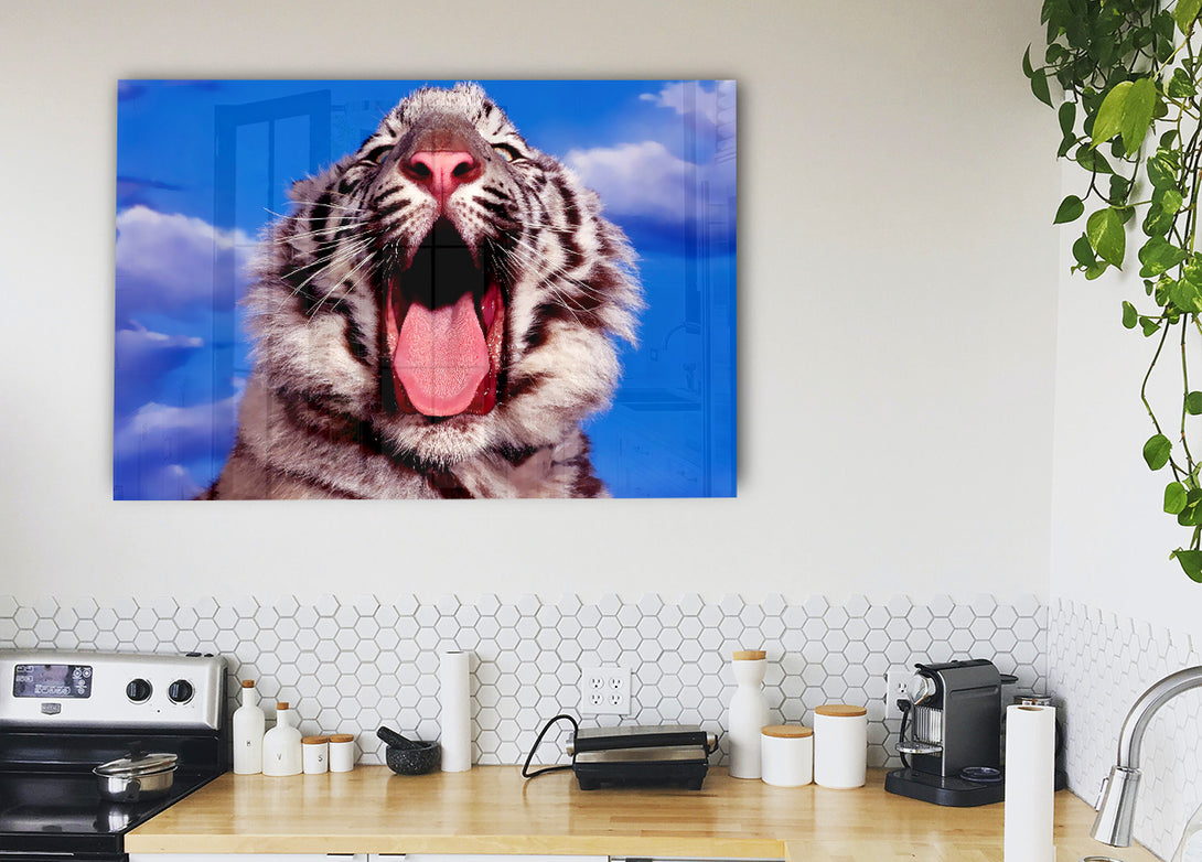 White Tiger Yawn acrylic print, UV printed onto 5mm thick acrylic glass. Comes with everything you need to hang on your wall.