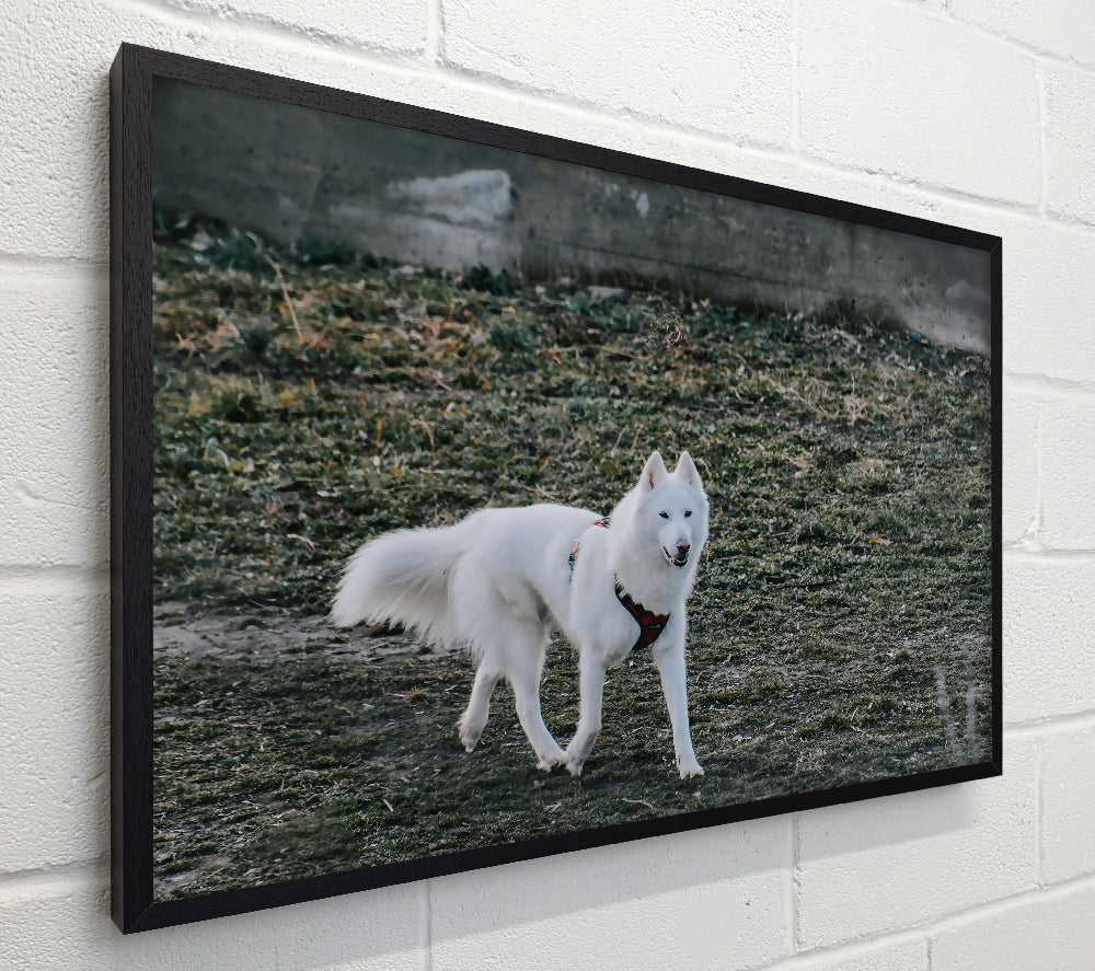 White Wolf In Green Grass