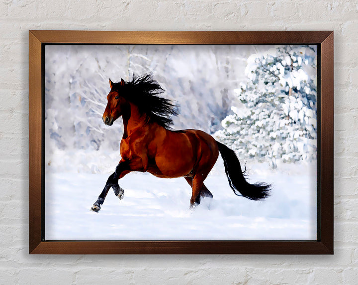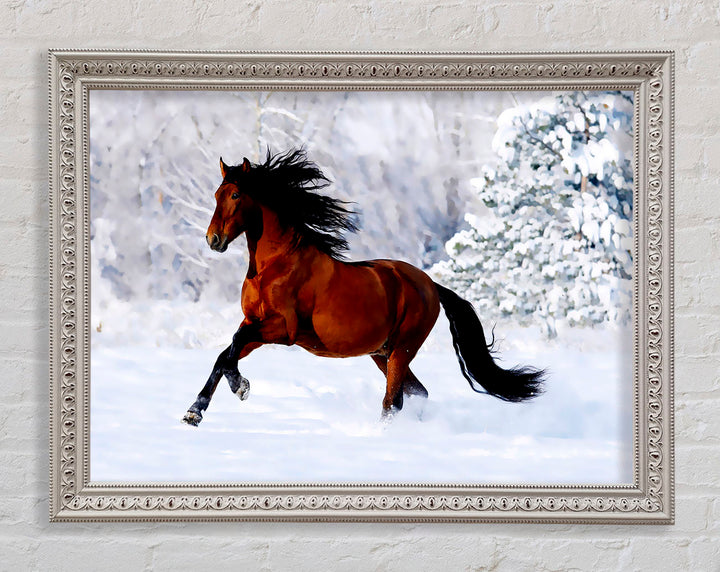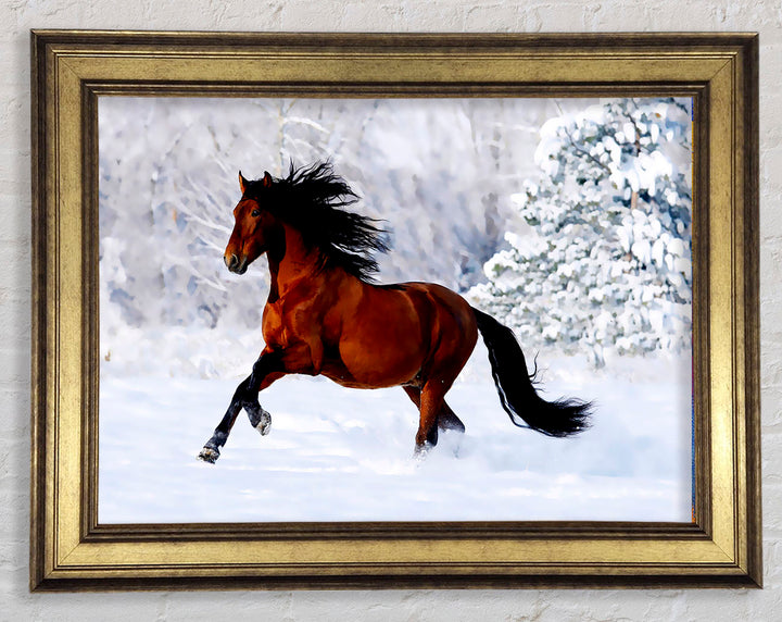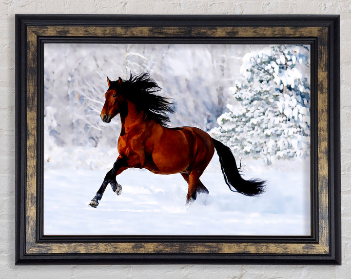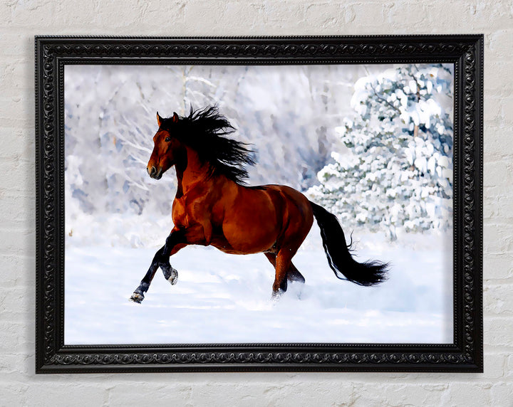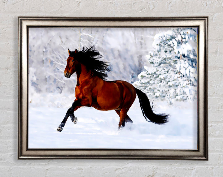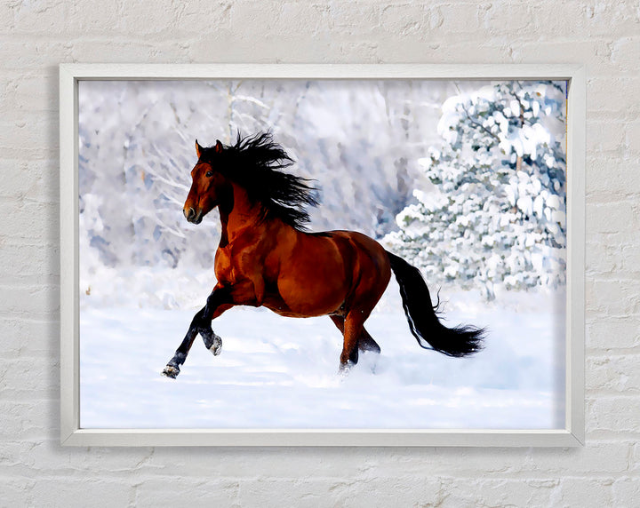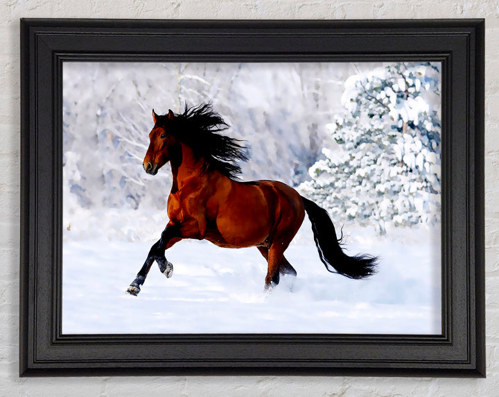 Introducing the Wild Horse In The Snow Framed Print, a stunning piece of framed art that captures the beauty and grace of a wild horse against a snowy backdrop. Perfect for any room, this print is available in six sizes, ranging from small to oversized, ensuring a perfect fit for your space. Choose from a variety of colors to match your décor. Each item is lovingly handmade in the United Kingdom, guaranteeing exceptional quality. The print comes ready to hang, making it easy to add a touch of nature's elegance to your home. Enhance your living space with this exquisite framed art and enjoy the serene beauty it brings.