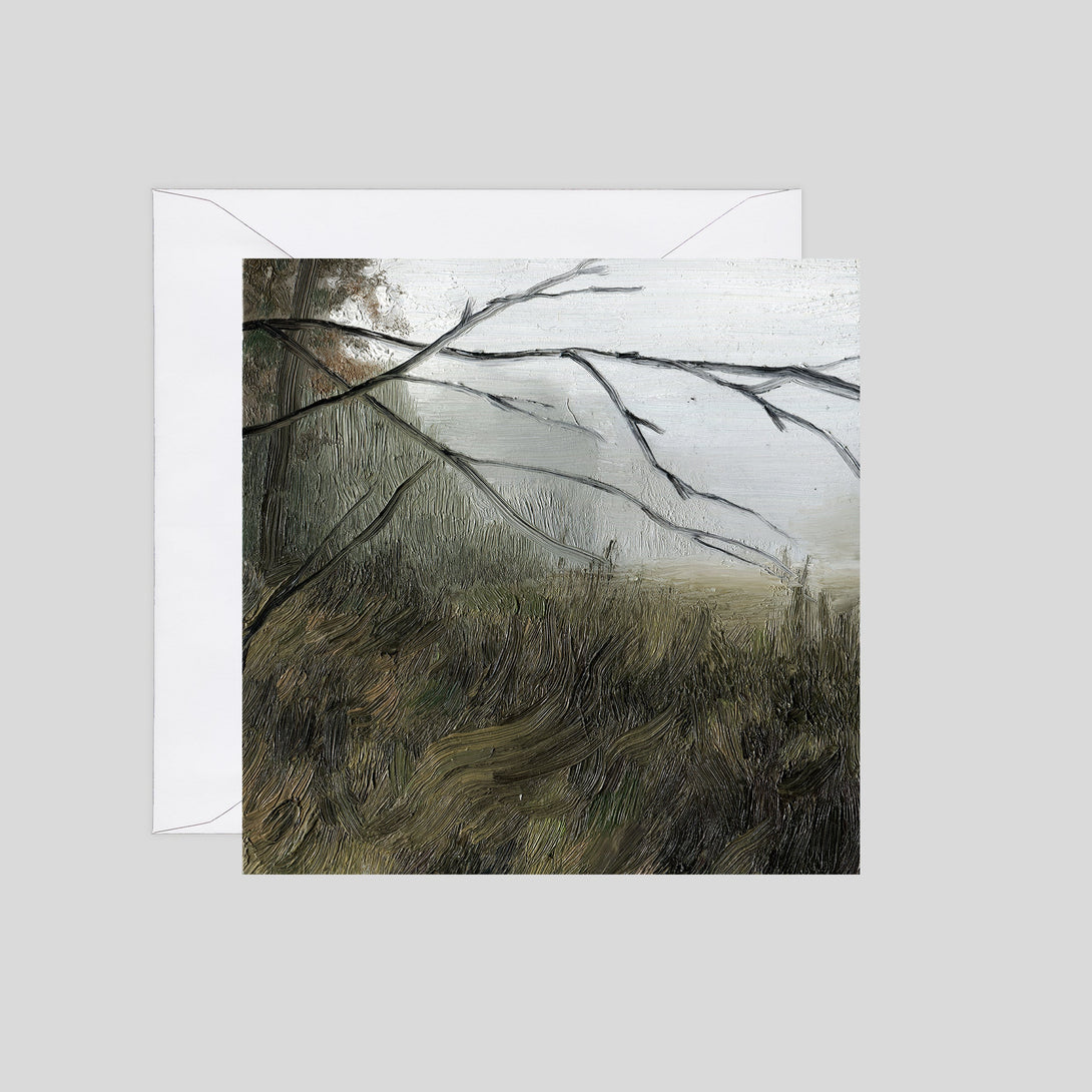 Born in Essex in 1994, William Reinsch is an emerging artist currently studying at City & Guilds School. A talented figurative painter, William is best known for his haunting landscapes and portraits, painted with expressive brushstrokes. The foggy landscapes reproduced on these cards are a recurring motif across the artist’s artwork.