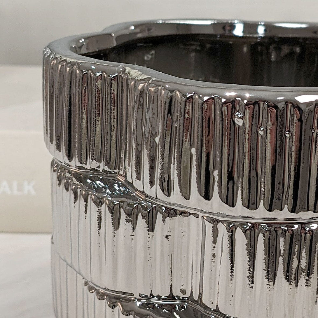 Enhance your space with the timeless charm of the Willow Silver Ribbed Ceramic Planter.