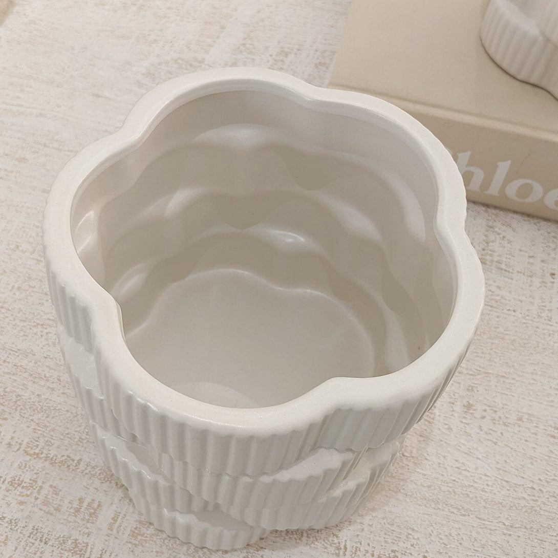 Enhance your space with the timeless charm of the Willow White Ribbed Ceramic Planter.