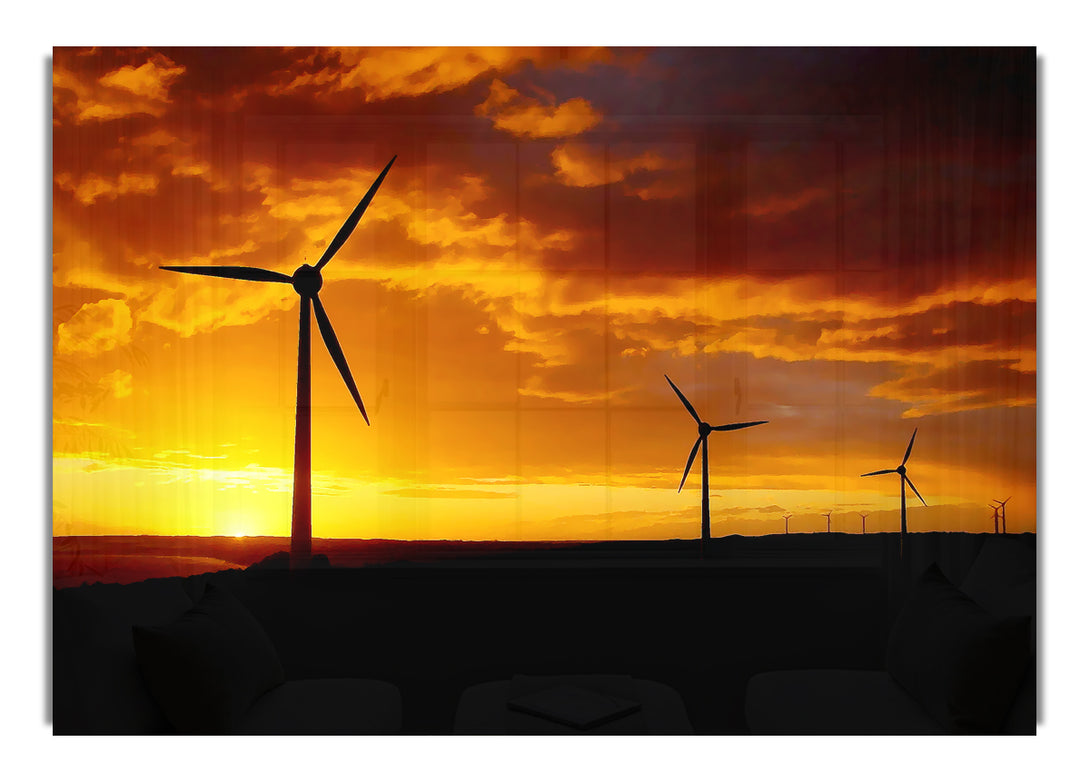 Windmills At Sunlight acrylic print, UV printed onto 5mm thick acrylic glass. Comes with everything you need to hang on your wall.