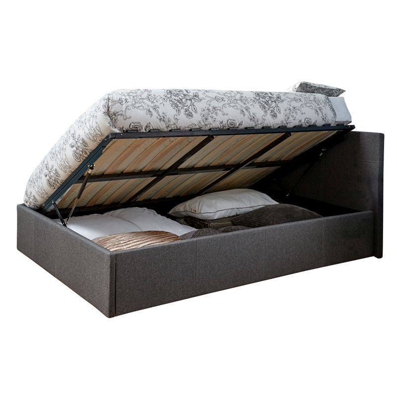 Winston Double Ottoman Bed Fabric Grey 5 x 7ft