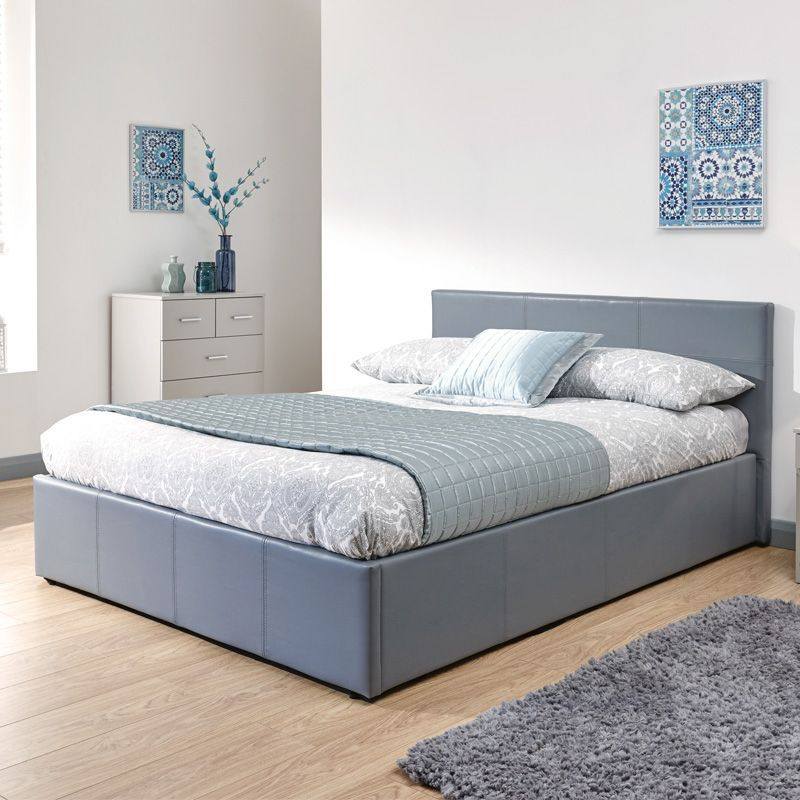 Winston King Size Ottoman Bed Faux Leather Grey 5 x 7ft