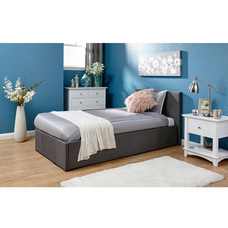 Winston Single Ottoman Bed Fabric Grey 3 x 7ft