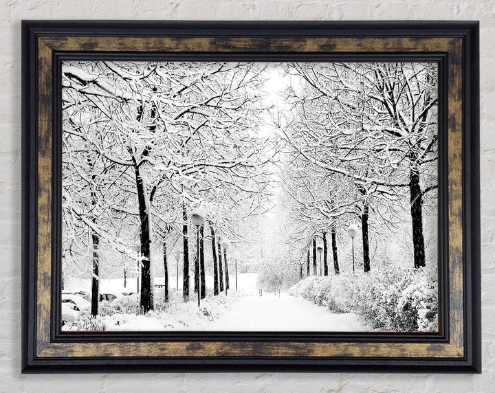 Winter In The Park Black And White Framed Print