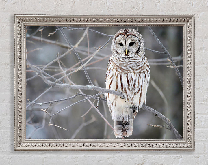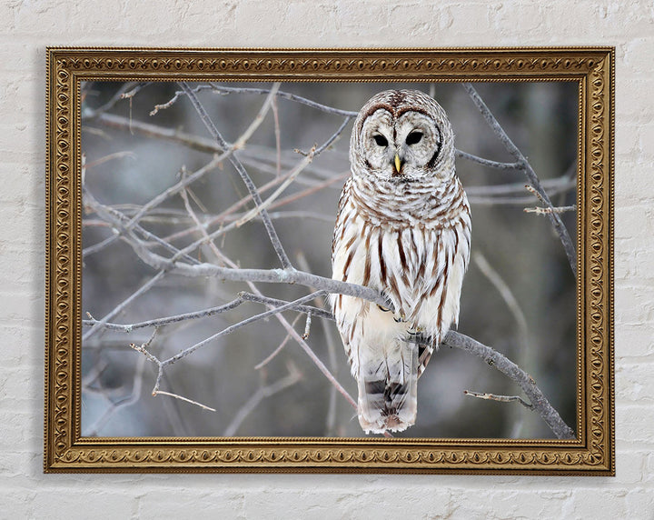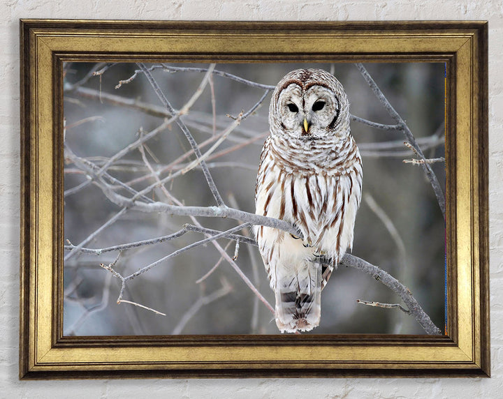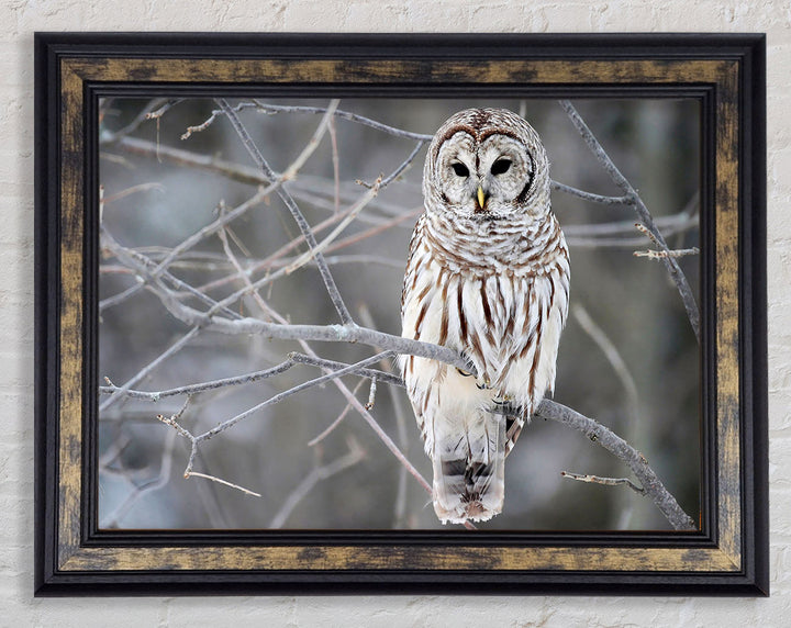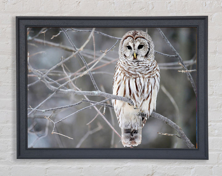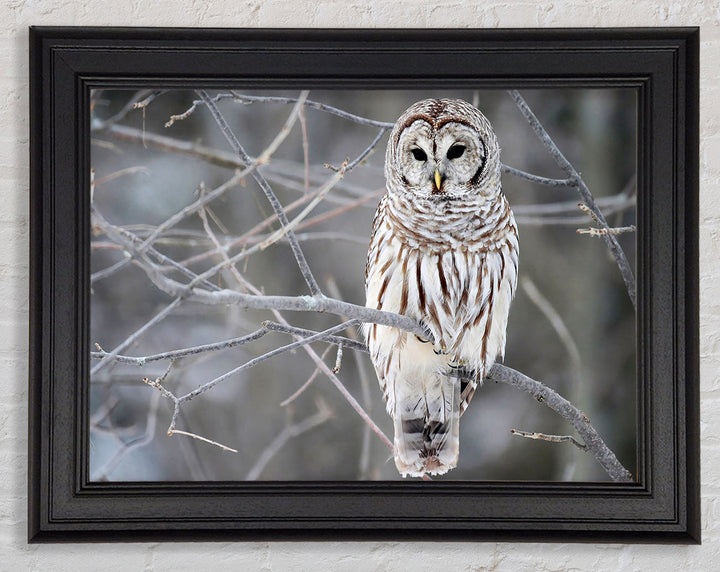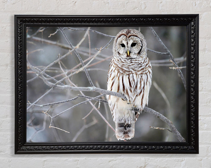 Introducing the Winter Owl Framed Print, a stunning piece of framed art that brings a touch of nature's beauty into your home. This exquisite print features a majestic owl perched in a snowy landscape, capturing the serene essence of winter. Available in six sizes, from small to oversized, you can find the perfect fit for any space. Choose from a variety of colors to complement your decor. Each piece is handmade in the United Kingdom, ensuring exceptional quality and craftsmanship. Ready to hang, this framed print is a hassle-free way to elevate your interior design. Add the Winter Owl Framed Print to your collection and enjoy a timeless piece that combines elegance and charm.