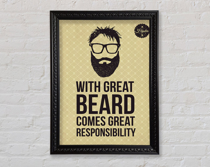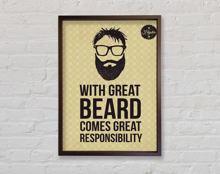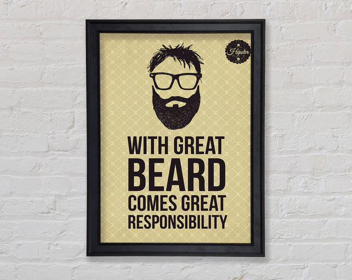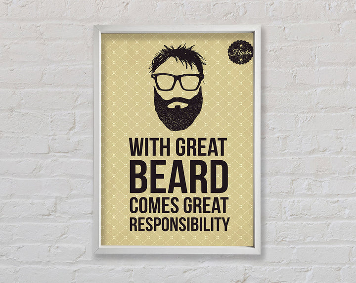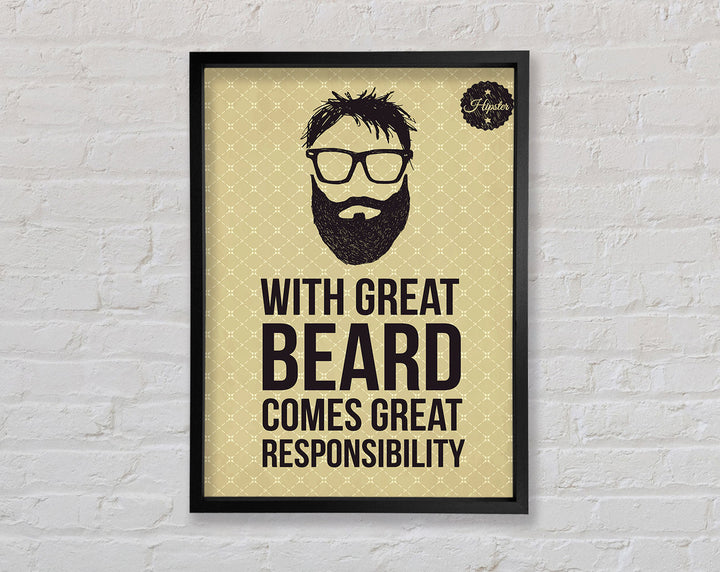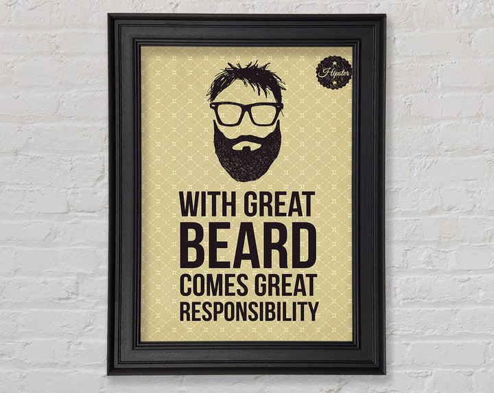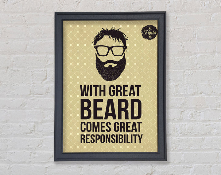 Introducing the "With Great Beard" framed print, a perfect piece of framed art to enhance any room. This unique and stylish print celebrates the majesty of a well-groomed beard with a fun and bold design. Available in six different sizes, from small to oversized, you can find the perfect fit for any space. Choose from a variety of colors to match your decor. Each print is handmade in the United Kingdom, ensuring top-notch craftsmanship and quality. Ready to hang, this framed art makes for an easy and impressive addition to your home or office. Celebrate beards in style with this remarkable piece of art!