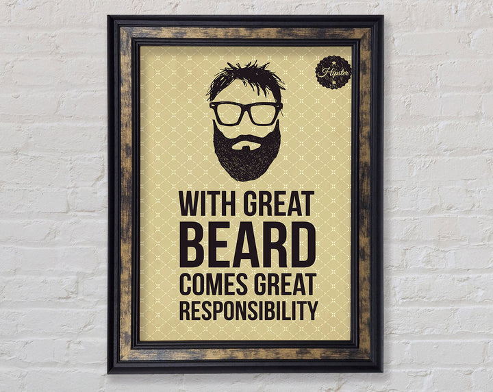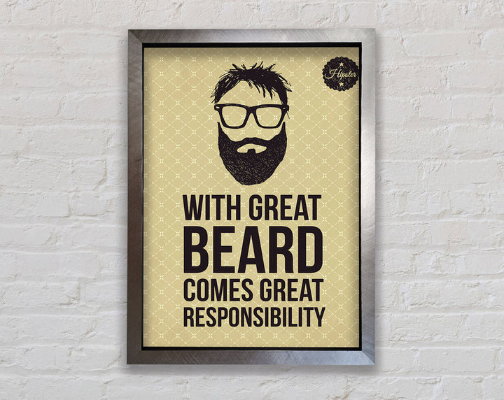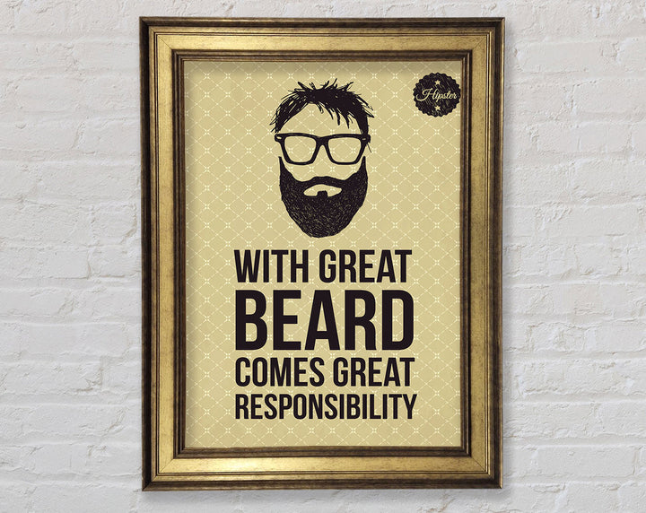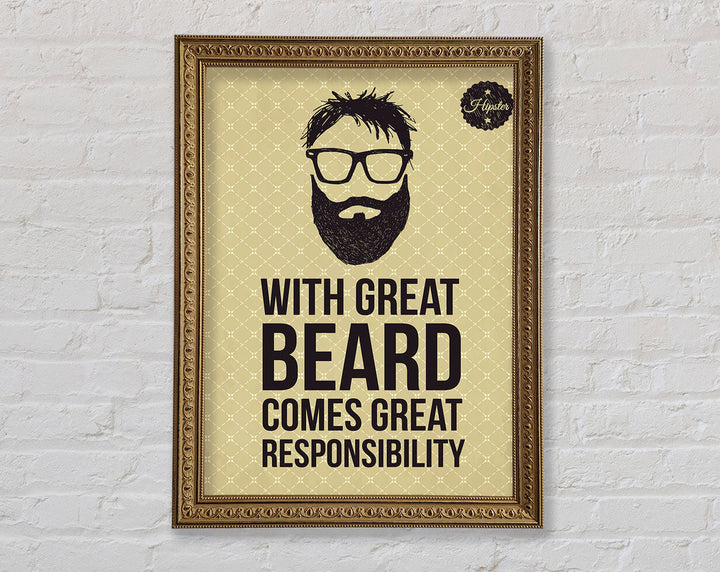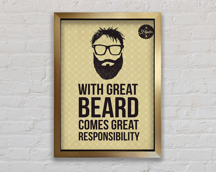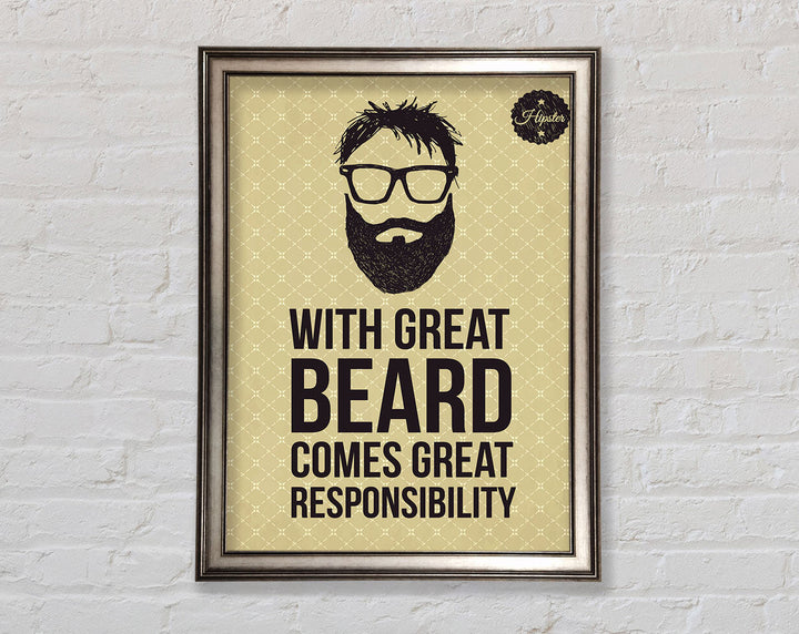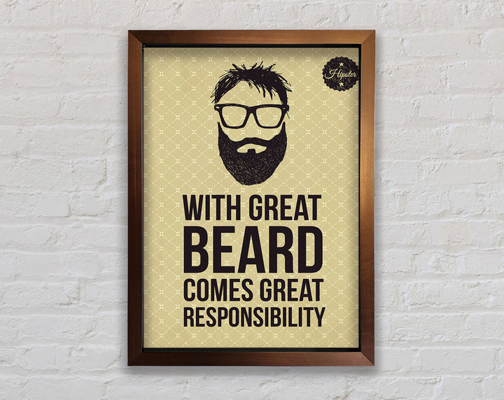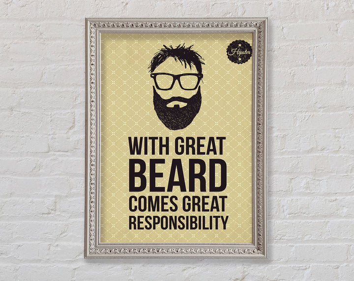 Introducing the "With Great Beard" framed print, a perfect piece of framed art to enhance any room. This unique and stylish print celebrates the majesty of a well-groomed beard with a fun and bold design. Available in six different sizes, from small to oversized, you can find the perfect fit for any space. Choose from a variety of colors to match your decor. Each print is handmade in the United Kingdom, ensuring top-notch craftsmanship and quality. Ready to hang, this framed art makes for an easy and impressive addition to your home or office. Celebrate beards in style with this remarkable piece of art!