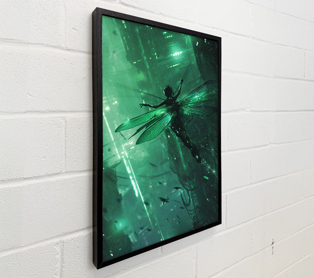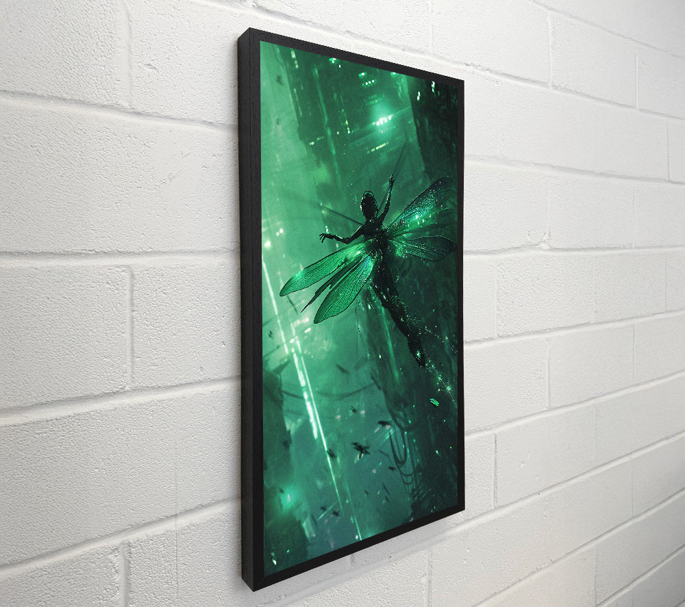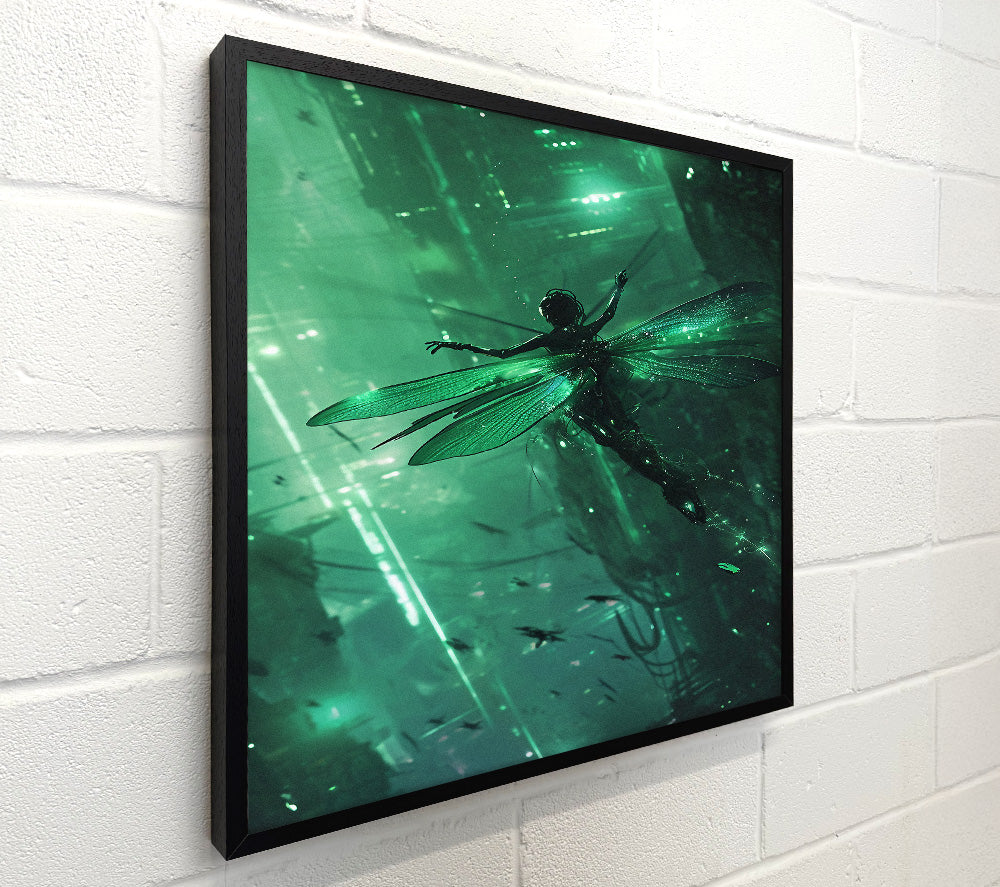 Woman Dragonfly Cyberpunk City