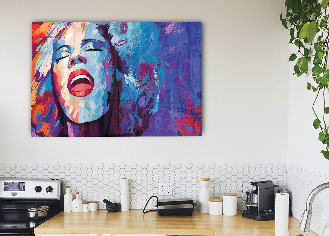 Woman Face Laugh acrylic print, UV printed onto 5mm thick acrylic glass. Comes with everything you need to hang on your wall.