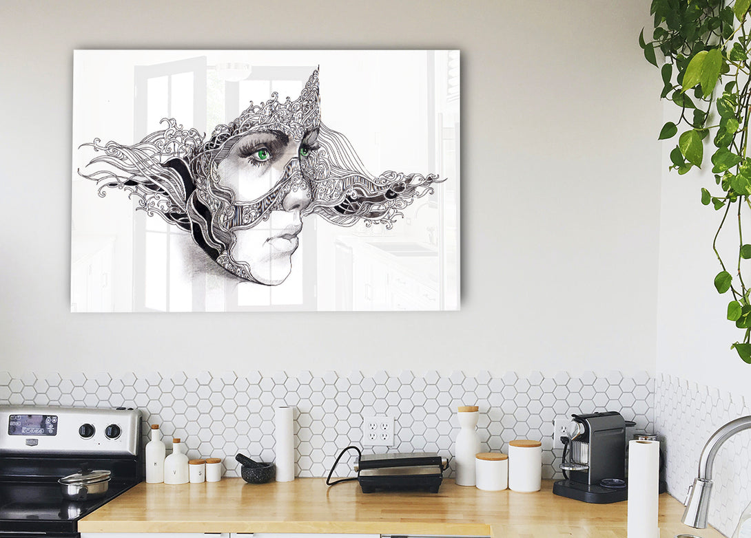 Woman Face Scribble 2 acrylic print, UV printed onto 5mm thick acrylic glass. Comes with everything you need to hang on your wall.
