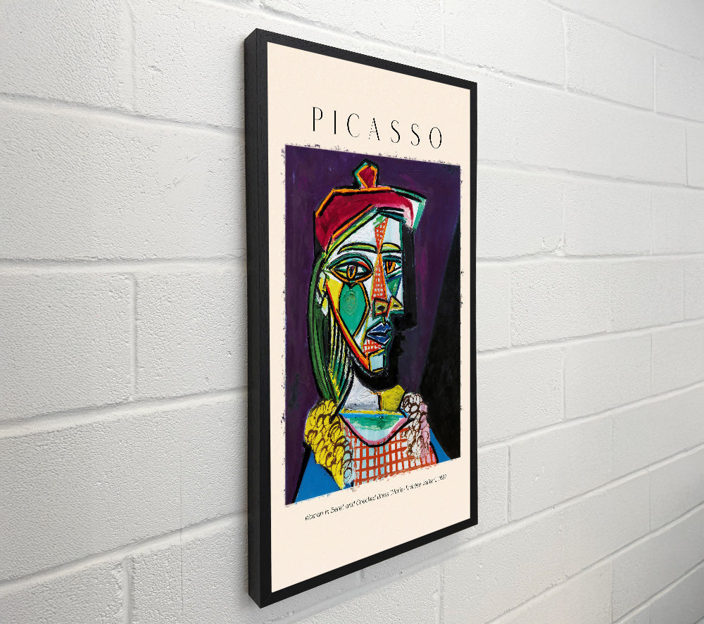 A Square Canvas Print Showing Woman In Beret And Checked Dress 1937 By Picasso Square Wall Art