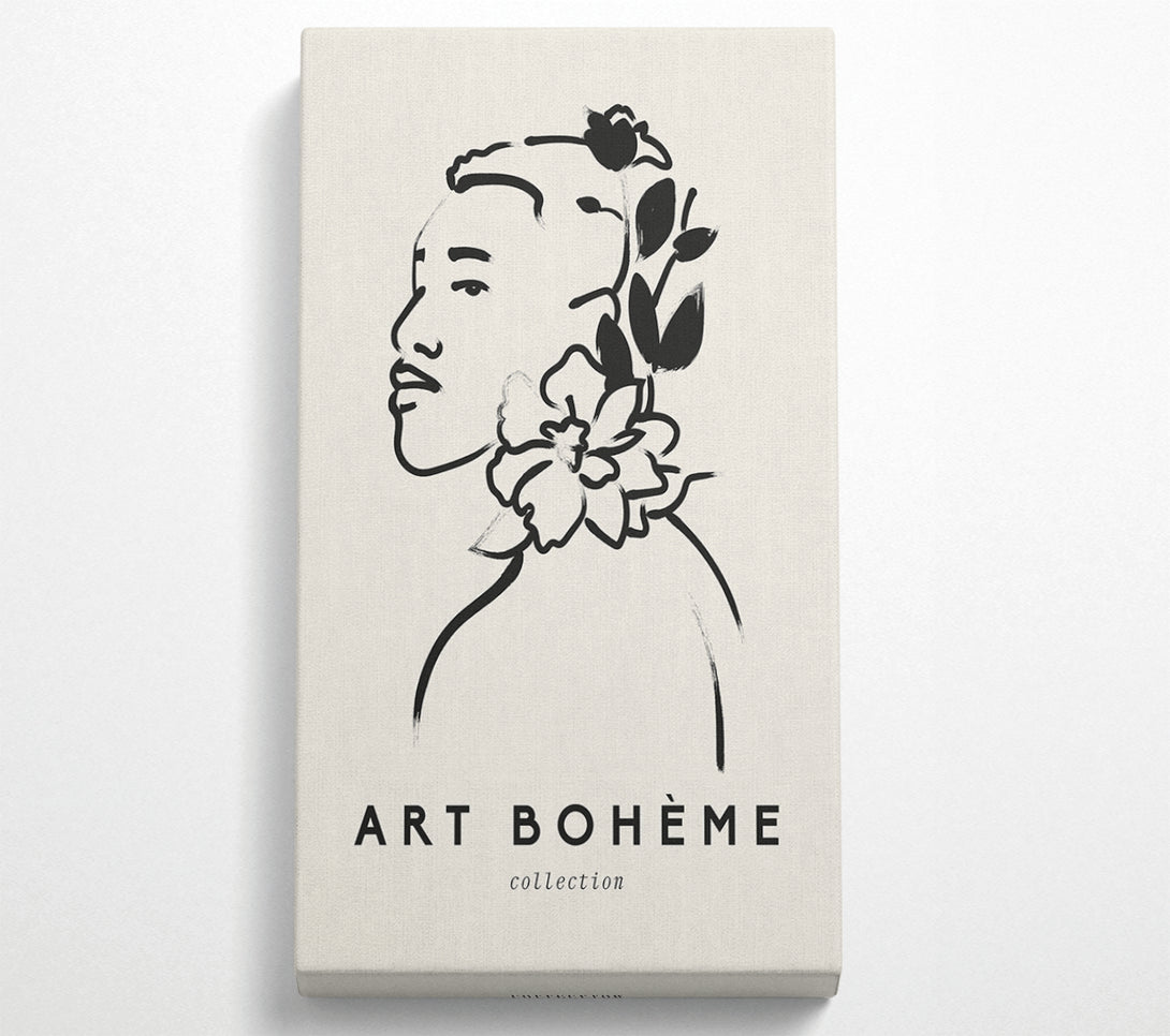 Woman With Flowers wide canvas, printed on coated polyester canvas. Mounted on to a 44mm box frame, ready to hang.
