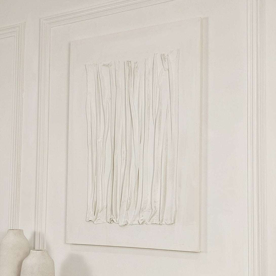 This stunning piece features elegant textured lines on a clean white canvas, creating a modern and minimalist look.