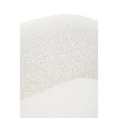 This two-seat sofa introduces mid-century sophistication with luxurious gold finish legs. Featuring a curved aesthetic, the seat is covered in plush white teddy fabric that is elevated with sumptuous foam padding.