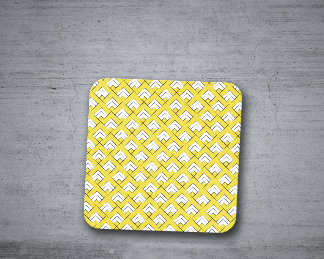 Yellow and White Geometric Tiles Design Coasters, Table Decor Drinks Mat