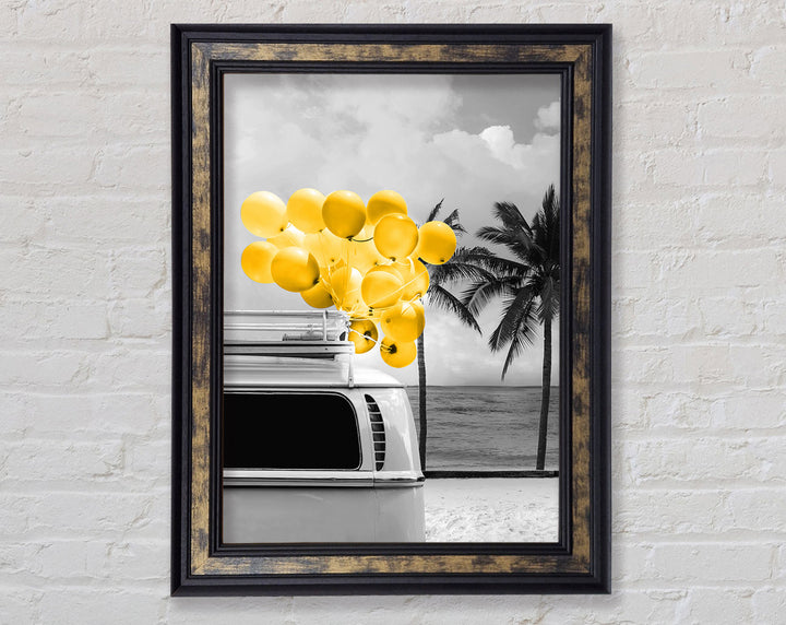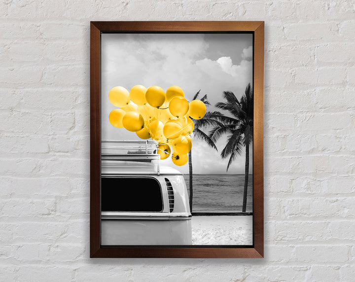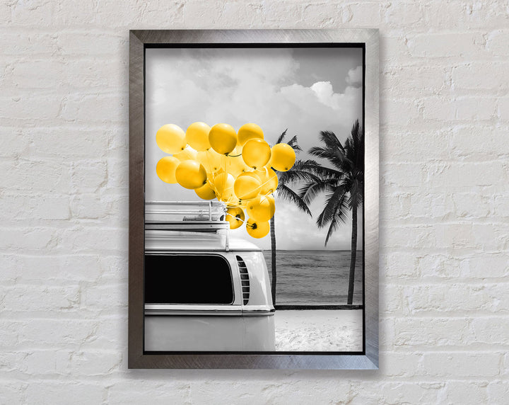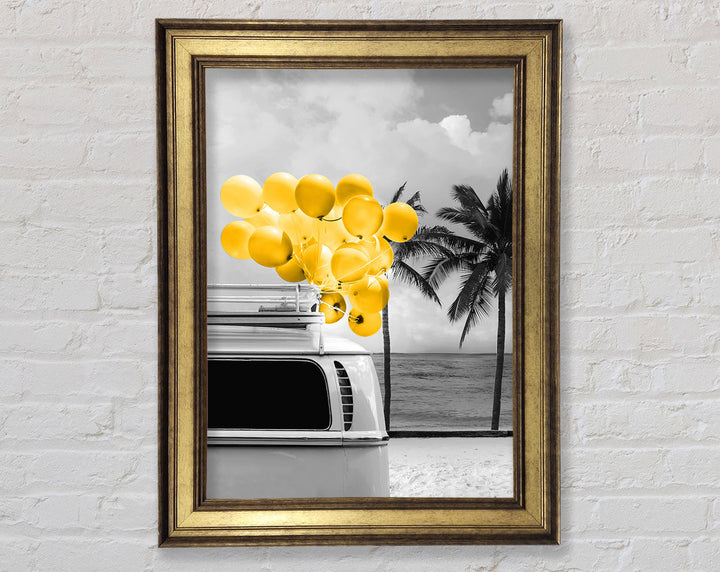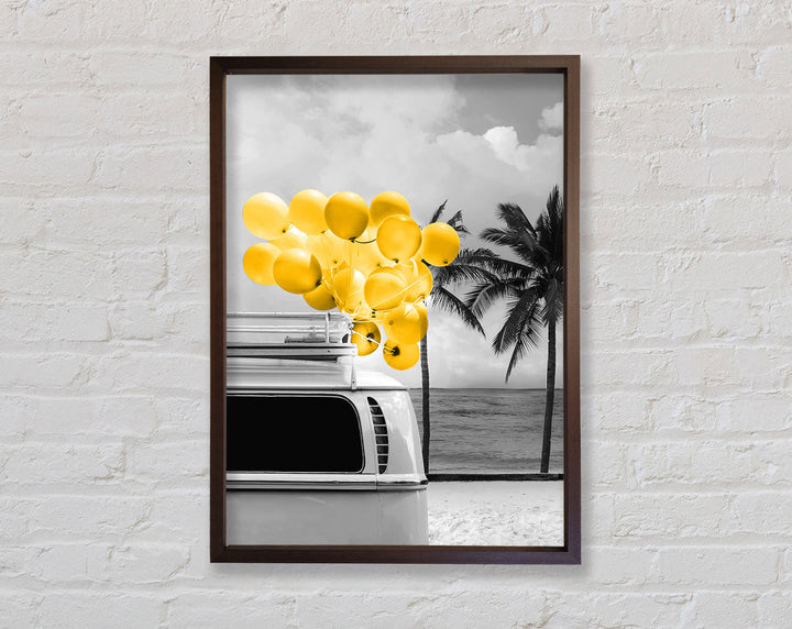 Brighten up your space with the Yellow Balloon Camper Van Framed Print, a charming piece of framed art that captures the joy of adventure. This delightful print features a classic camper van with a playful yellow balloon, perfect for adding a touch of whimsy to any room. Available in six sizes, from small to oversized, this artwork can fit any wall space perfectly. Choose from a variety of colors to match your decor style. Each piece is handmade in the United Kingdom, ensuring top-notch quality and craftsmanship. Plus, it comes ready to hang, making it easy to add a vibrant and cheerful accent to your home.
