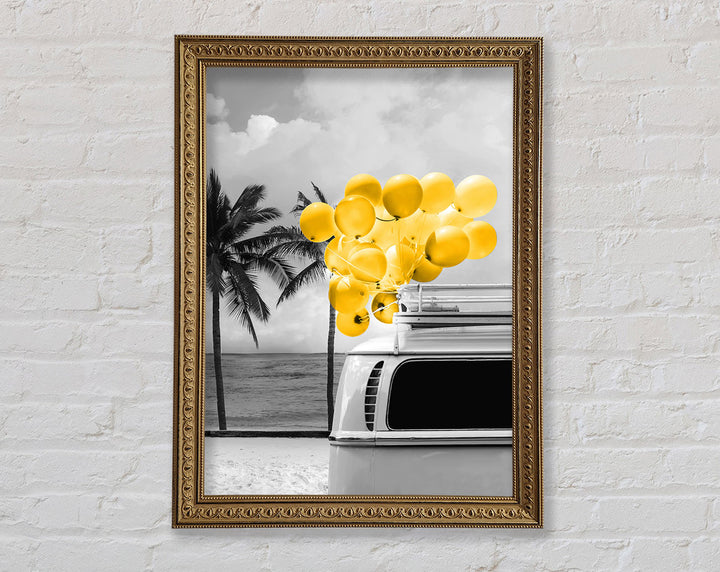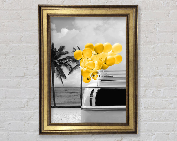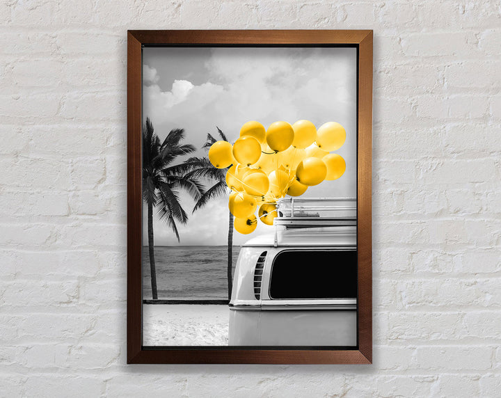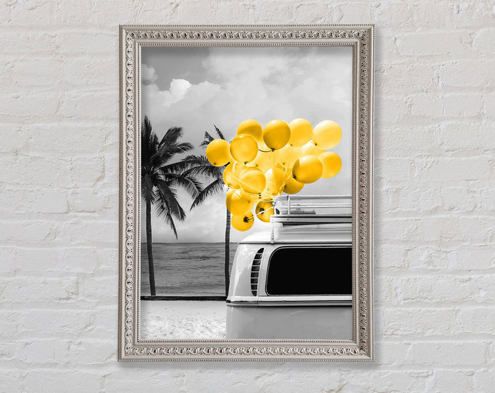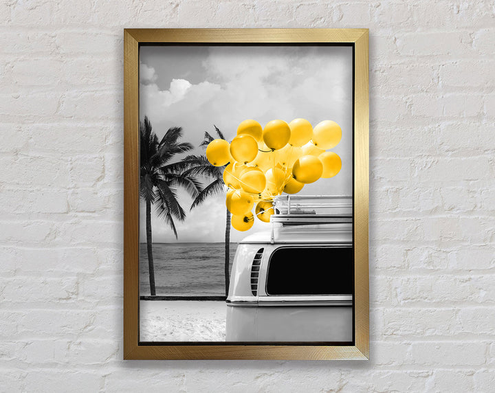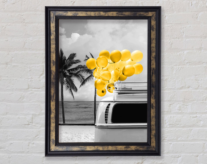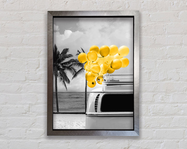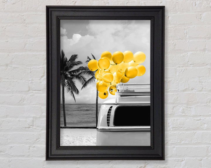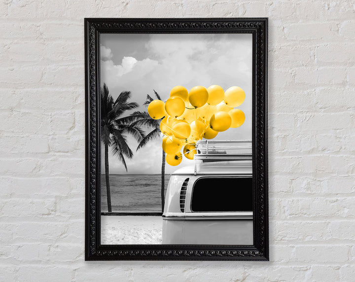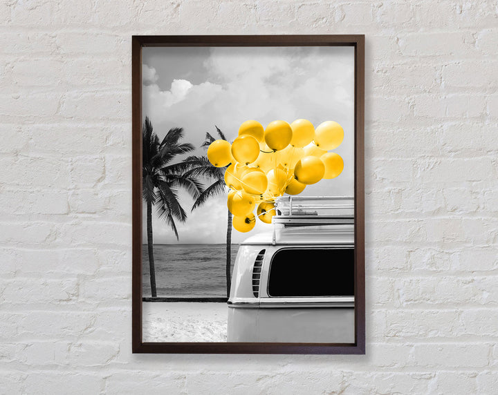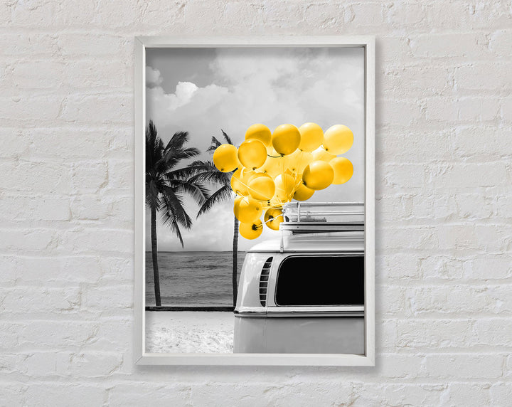 Brighten up your space with the Yellow Balloons By The Beach Framed Print. This stunning framed art showcases a cheerful scene of yellow balloons floating by the seaside, capturing the essence of joy and freedom. Available in six sizes, from small to oversized, it fits perfectly in any room. Choose from a variety of frame colors to match your decor. Handmade in the United Kingdom, this print is crafted with attention to detail and high-quality materials. Ready to hang, it offers an easy and stylish way to enhance your home or office. Bring the beauty of the beach indoors with this captivating piece.