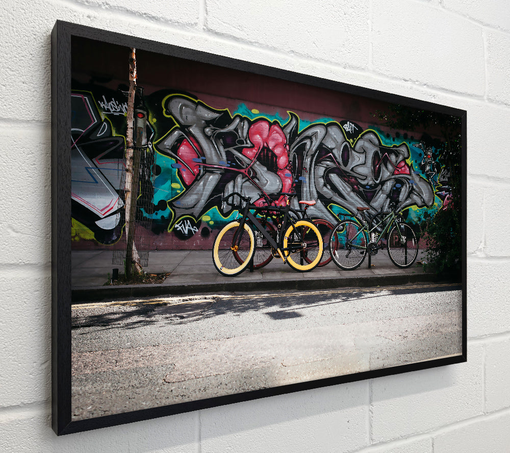 Yellow Bikes On Grey Wall