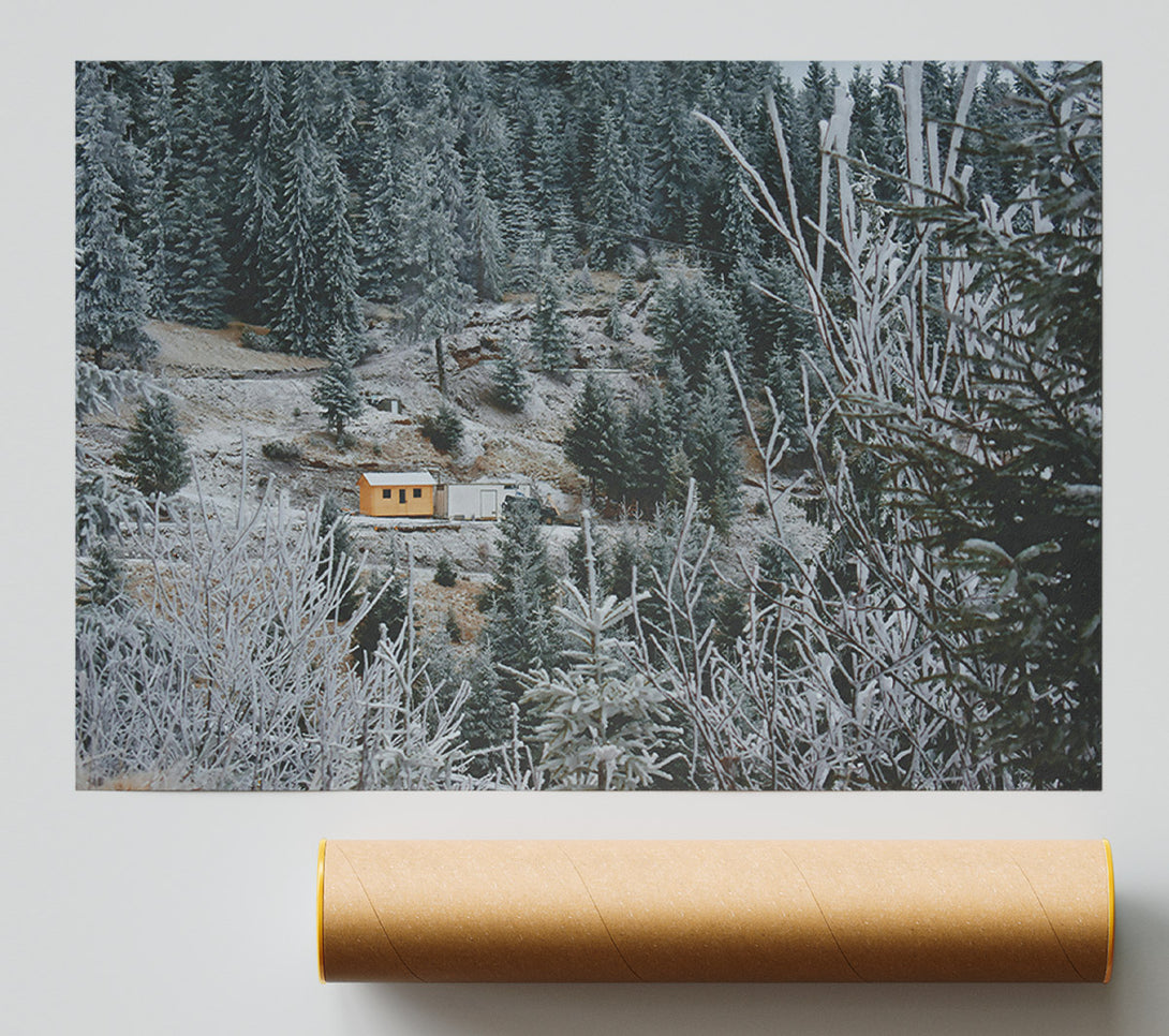 Our Yellow Cabin In The Snow Poster is printed 260 GSM premium lustre paper that offers vibrant colours and exceptional detail.