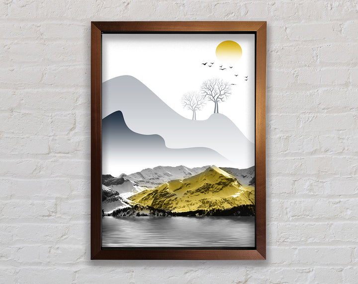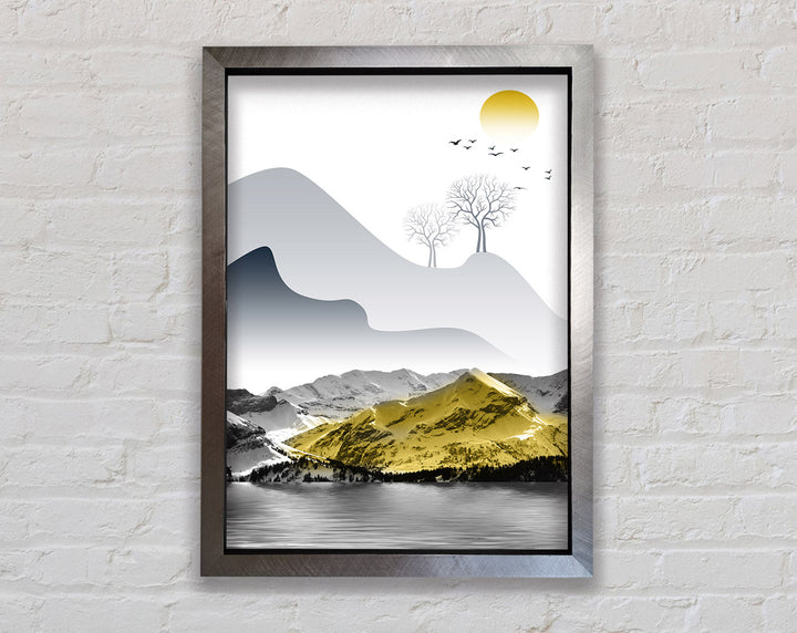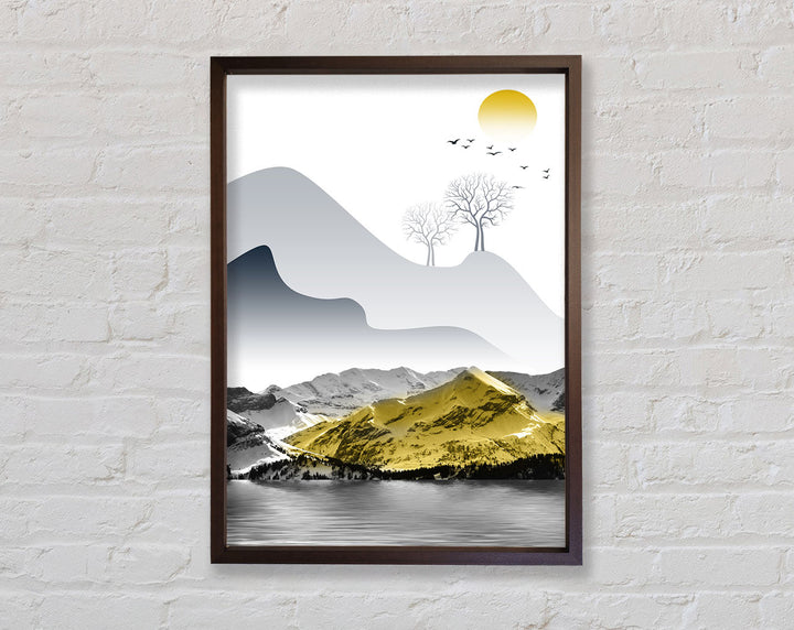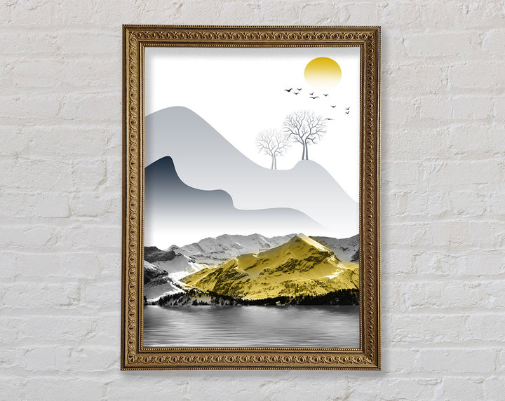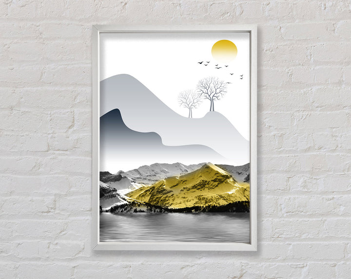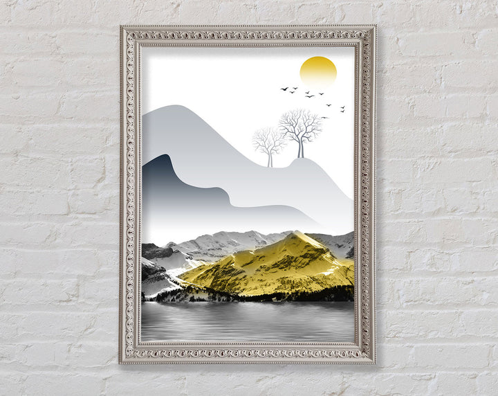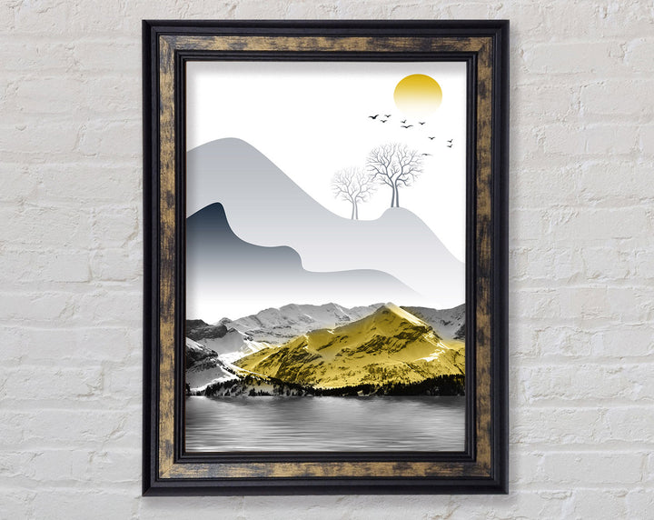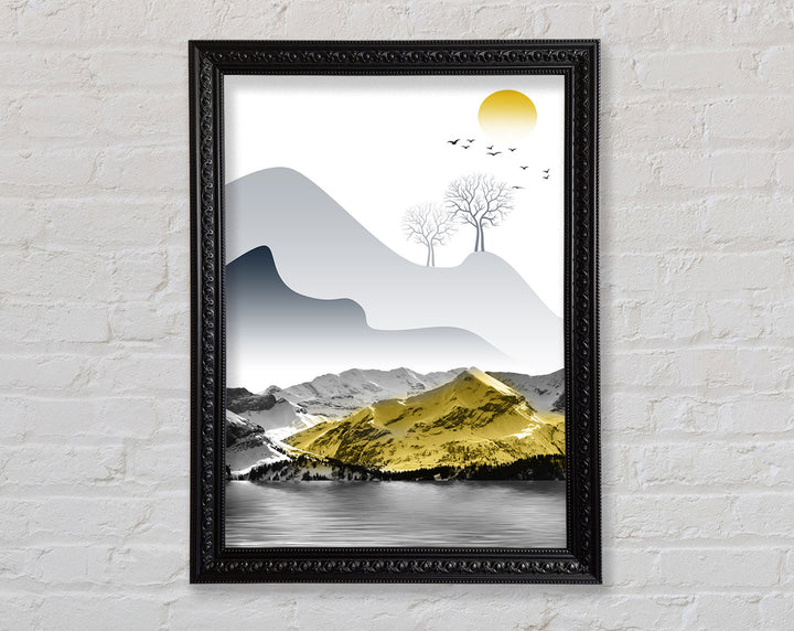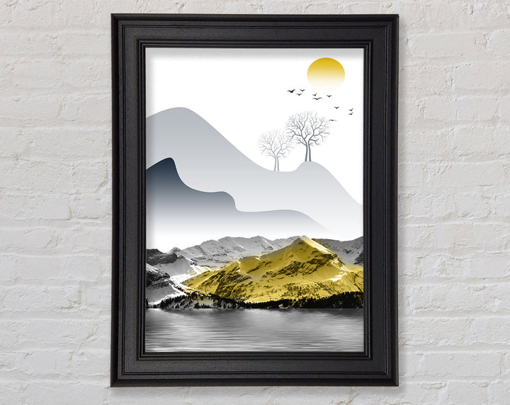 Transform your home or office with the stunning Yellow Mountain Lake Framed Print. This piece of framed art captures the serene beauty of a tranquil lake set against majestic yellow mountains. Available in six sizes, from small to oversized, it offers the perfect fit for any space. Choose from a variety of frame colors to match your decor seamlessly. Each print is meticulously handmade in the United Kingdom, ensuring exceptional quality and attention to detail. Ready to hang, it provides an effortless way to elevate your space with natural beauty and artistic elegance. Make a statement with this captivating framed art and enjoy the calming ambiance it brings to your environment.