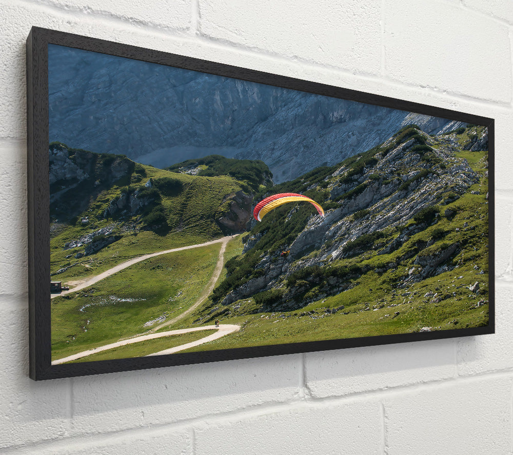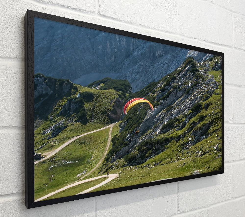 Yellow Paraglider Above Mountains