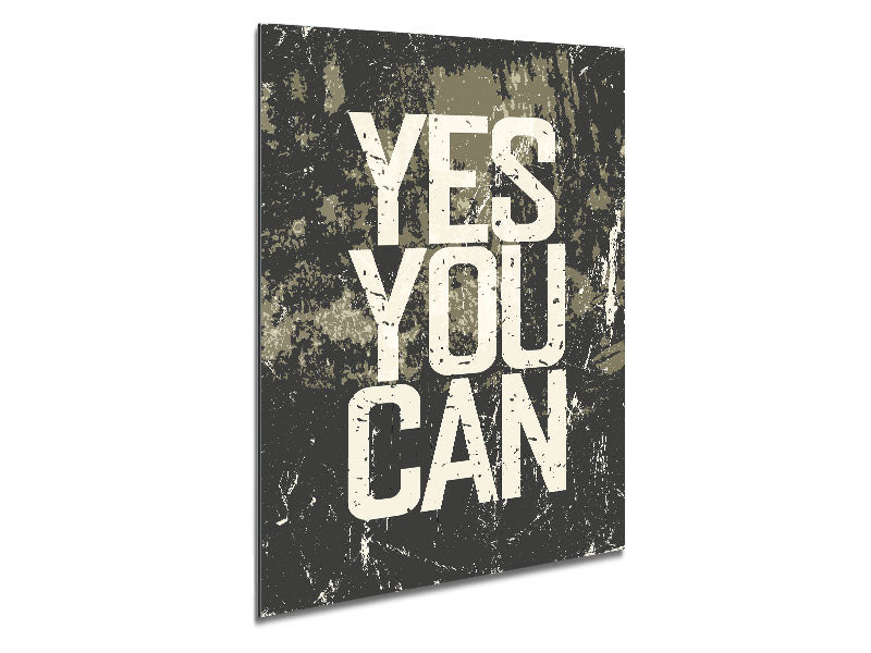 Yes You Can 3 Printed on brushed aluminium dibond. A modern way to display art and easy to maintain.