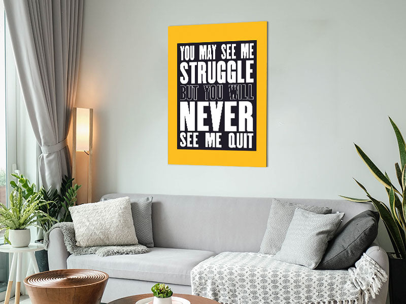 You May See Me Struggle Printed on brushed aluminium dibond. A modern way to display art and easy to maintain.