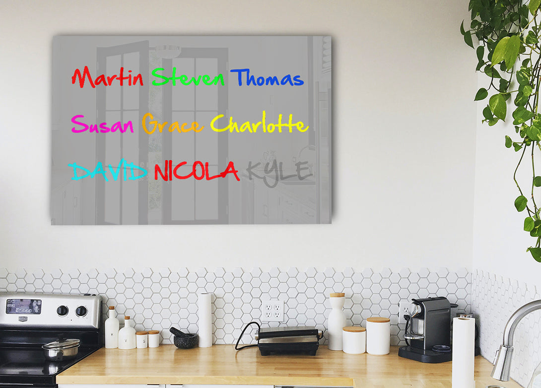 Your Name In A Choice Of Colours Grey White acrylic print, UV printed onto 5mm thick acrylic glass. Comes with everything you need to hang on your wall.