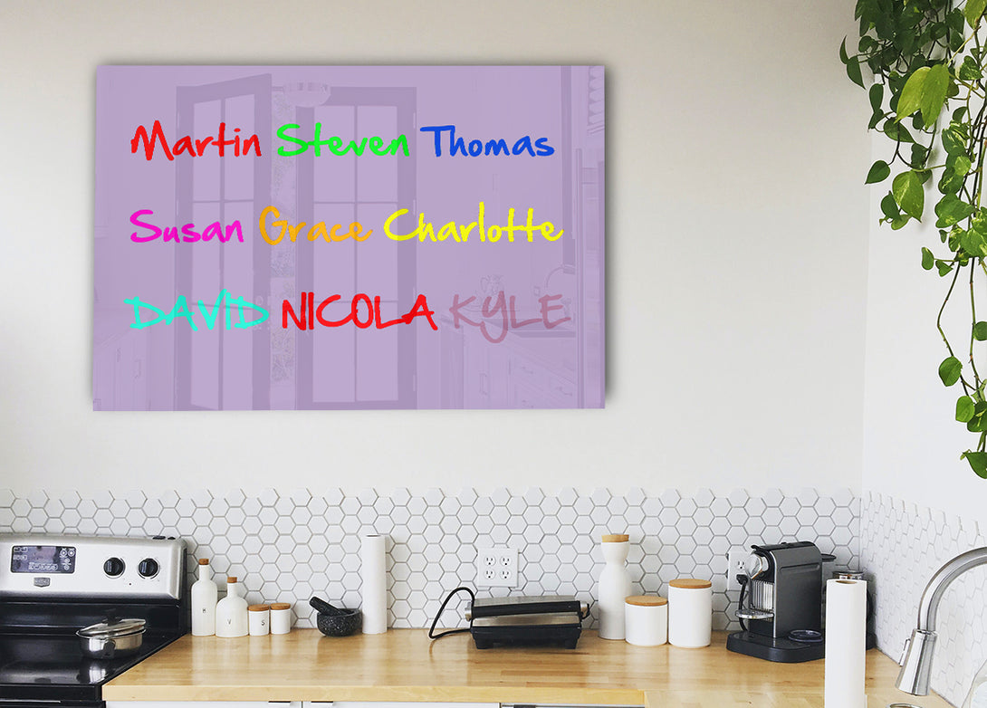 Your Name In A Choice Of Colours Lilac acrylic print, UV printed onto 5mm thick acrylic glass. Comes with everything you need to hang on your wall.