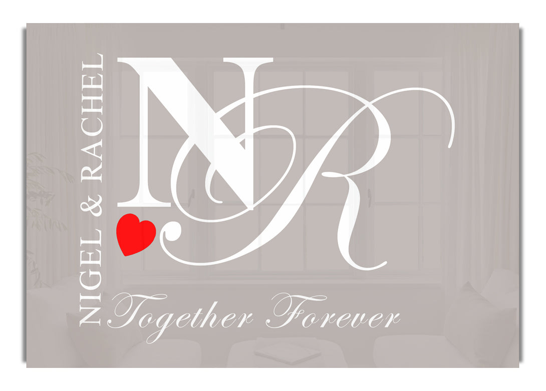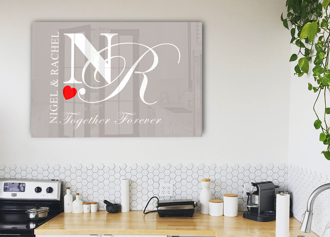 Your Names And Initials Together Forever Beige acrylic print, UV printed onto 5mm thick acrylic glass. Comes with everything you need to hang on your wall.